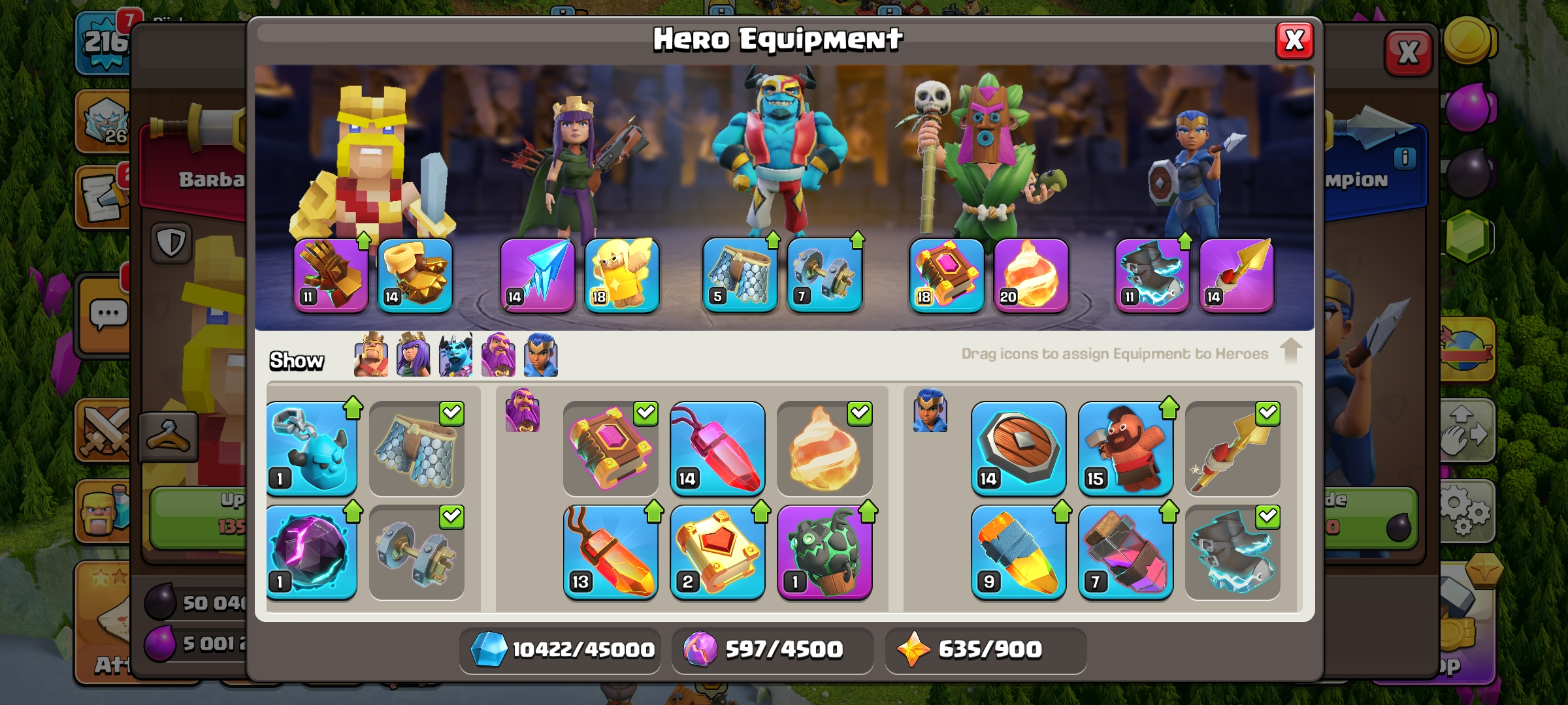 CC-94 TH17/LV 215 [ 6 Epic Equipments / High Level ] Heroes 70/87/60/59/28 | 3 Scenery | BH9/BM30