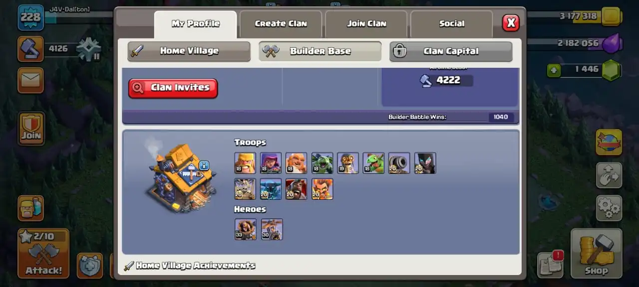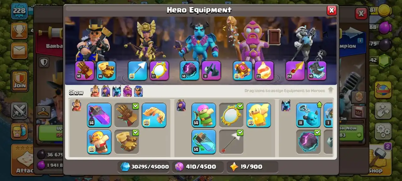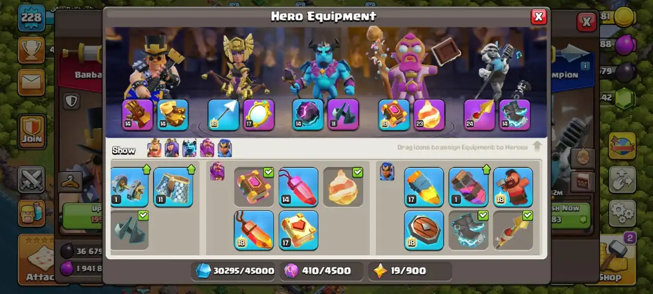 Cheap🔥TH 16 almost max🔥high heroes level 80/90/56/61/36☠️6 epic equipment⚒️6 builder’s✅cn on✅13 heroes skin