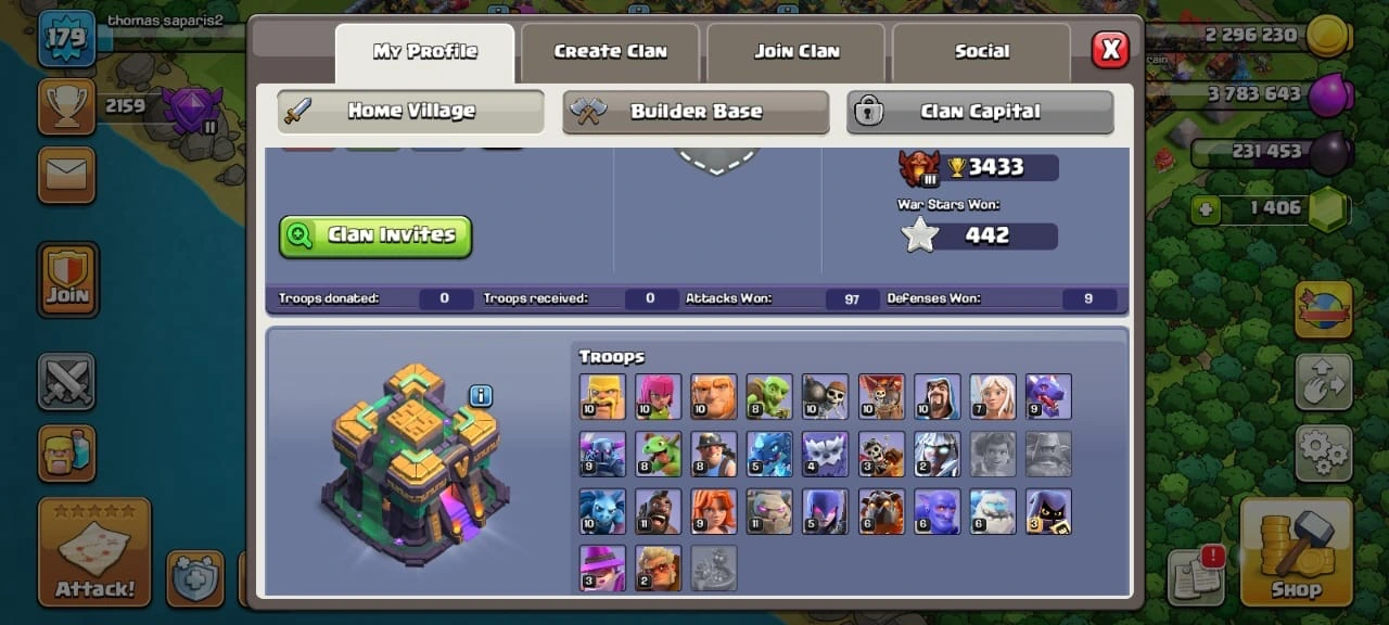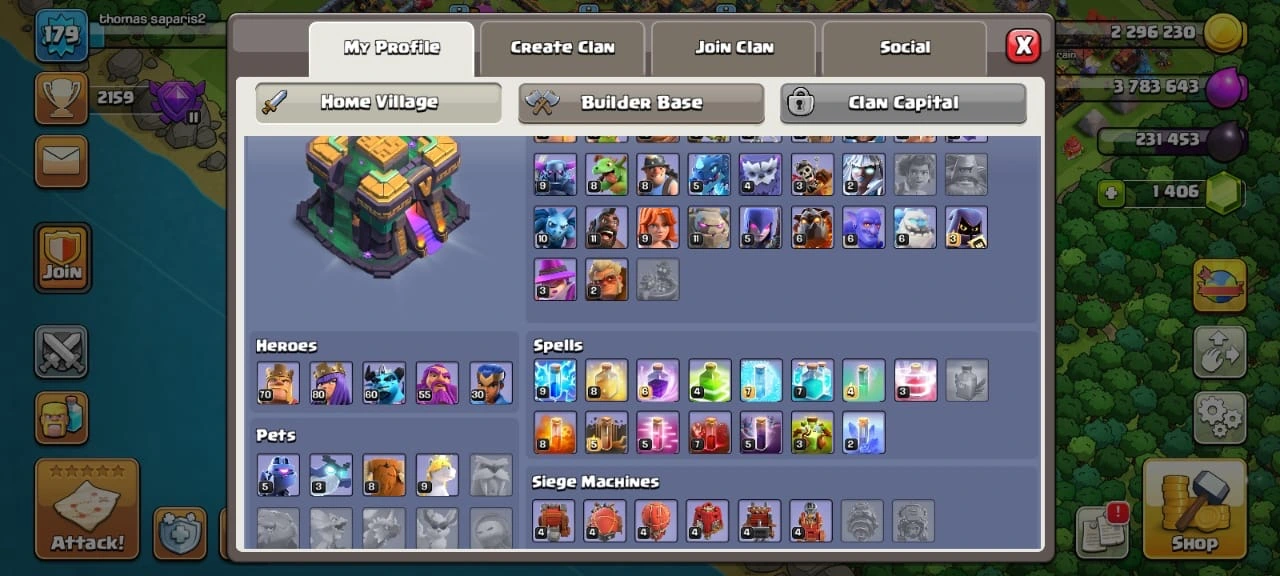 Cheap🔥Town hall 14 max🔥max heroes level 70/80/60/55/30☠️6 epic equipment⚒️6 builder✅2 scenery and 17 heroes skin✅cn on⭐️238 cwl medal