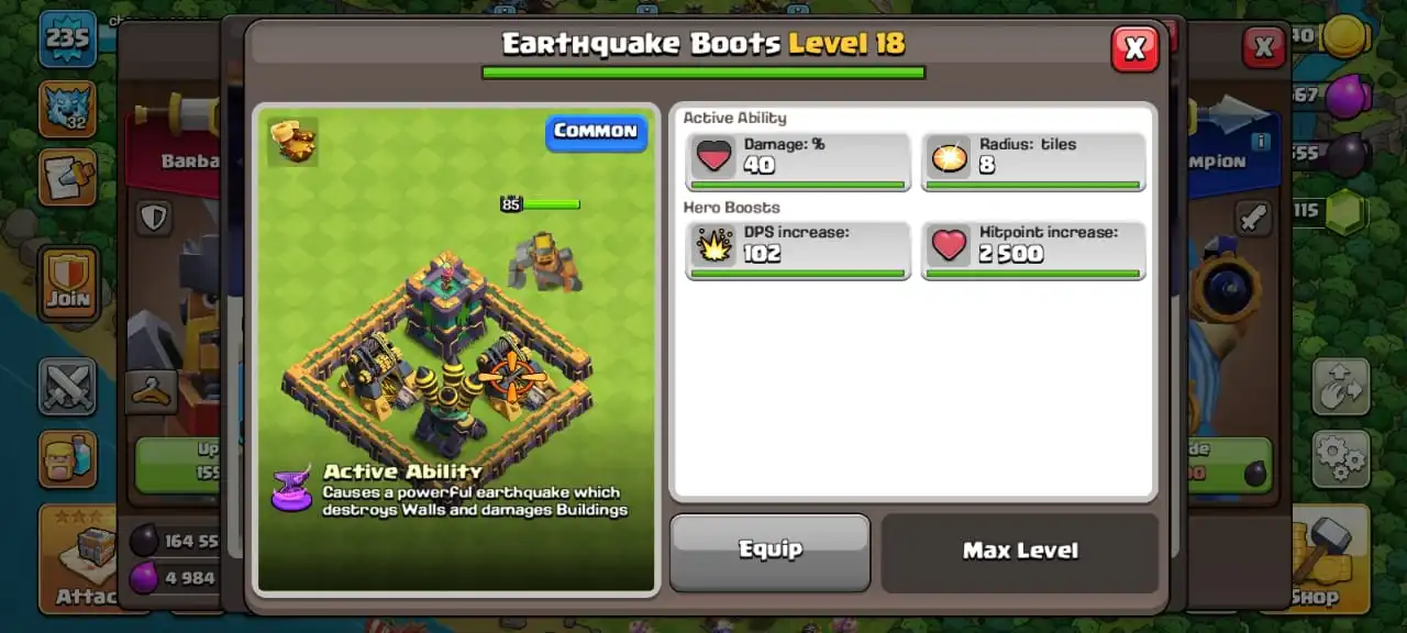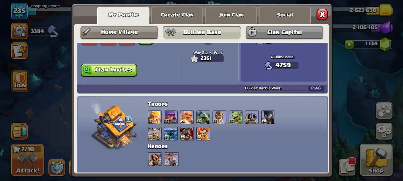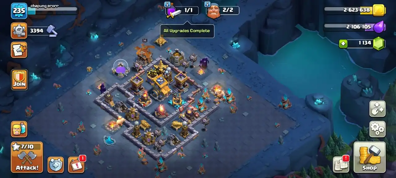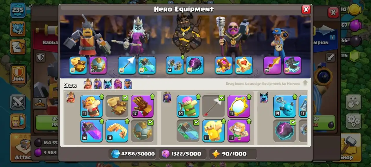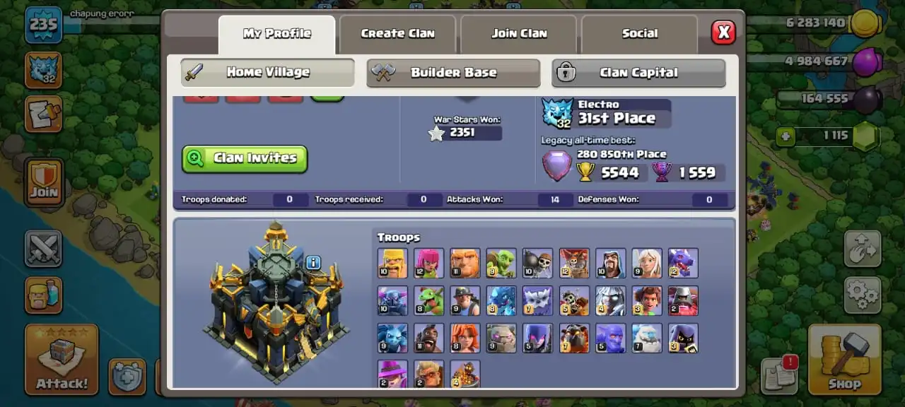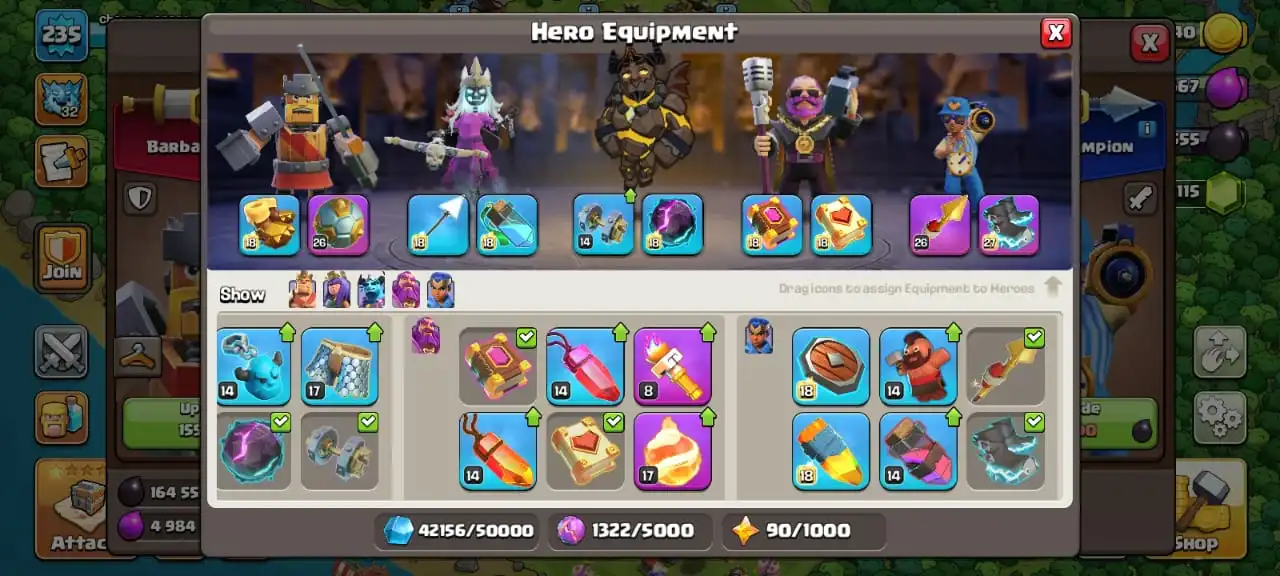 TH 17 almost maxđ„high heroes level 75/90/63/65/44â ïžmax electro bootsâïž6 builderâsâ