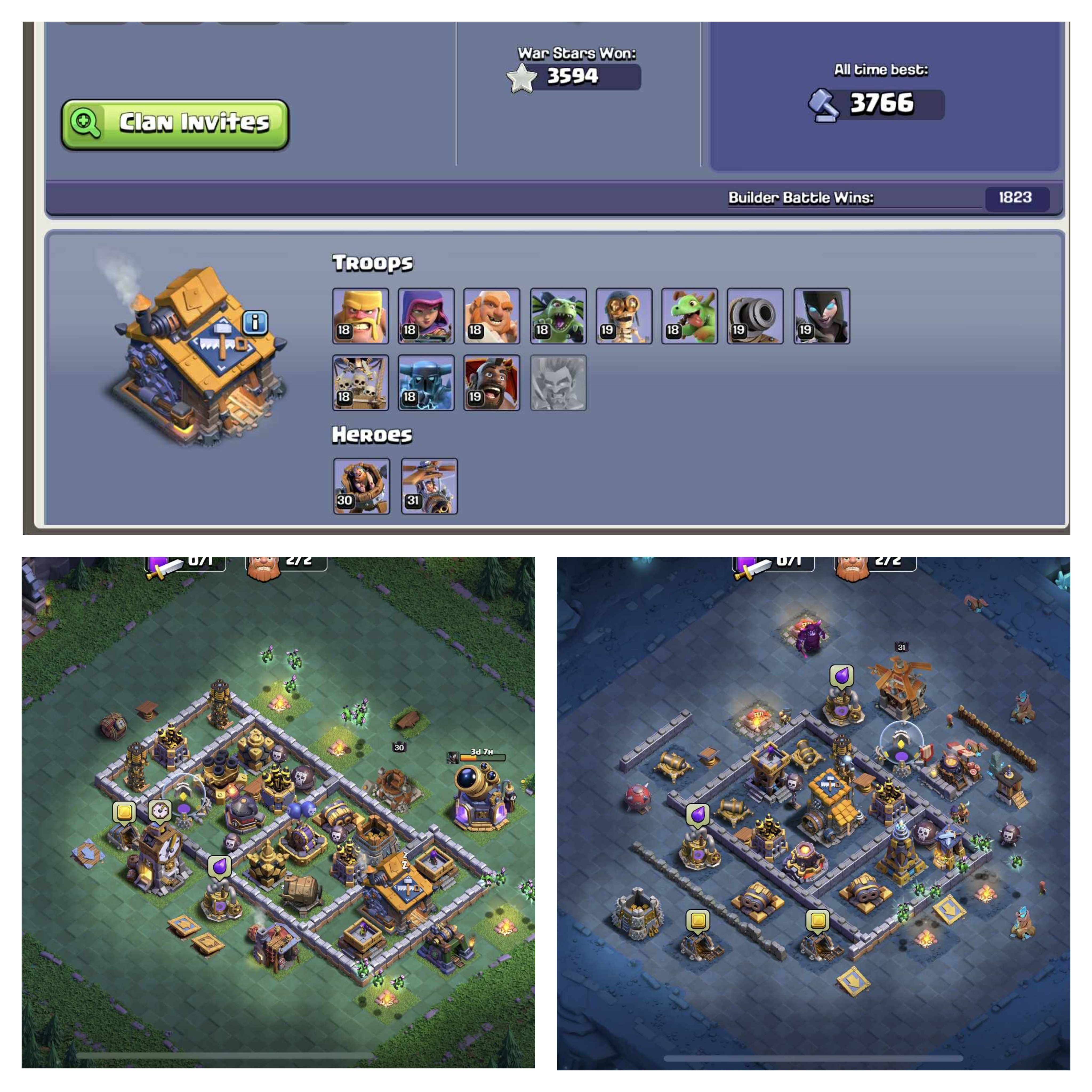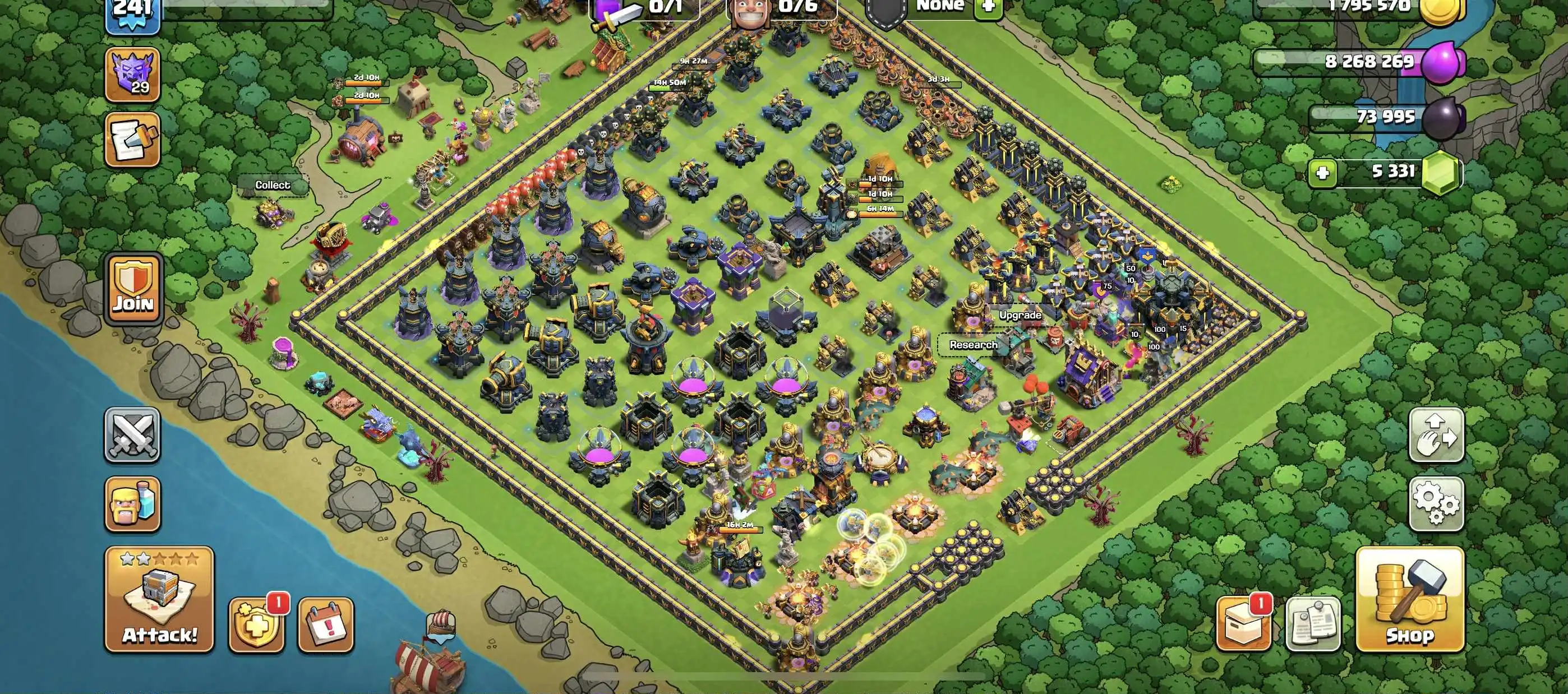Level 241🌷TH 17 Max Almost🌷5k+ Gems🌷5 Epic Equipments Max🌷Heroes/Defense Max