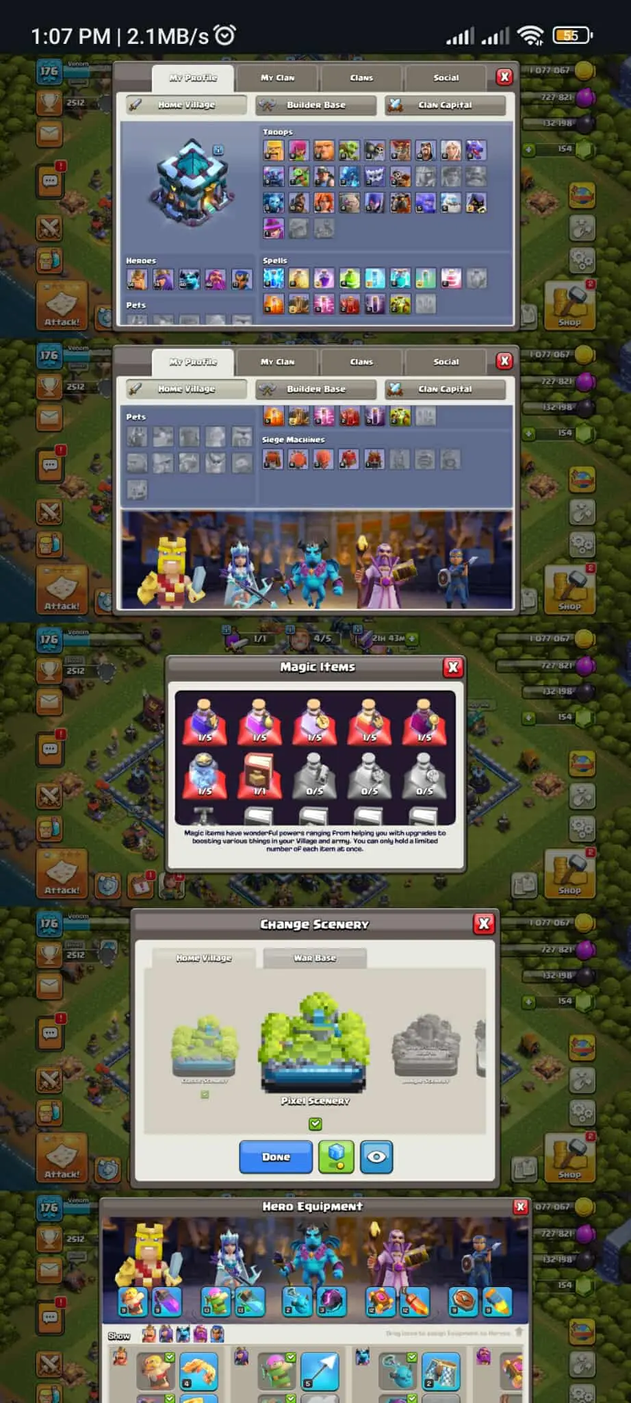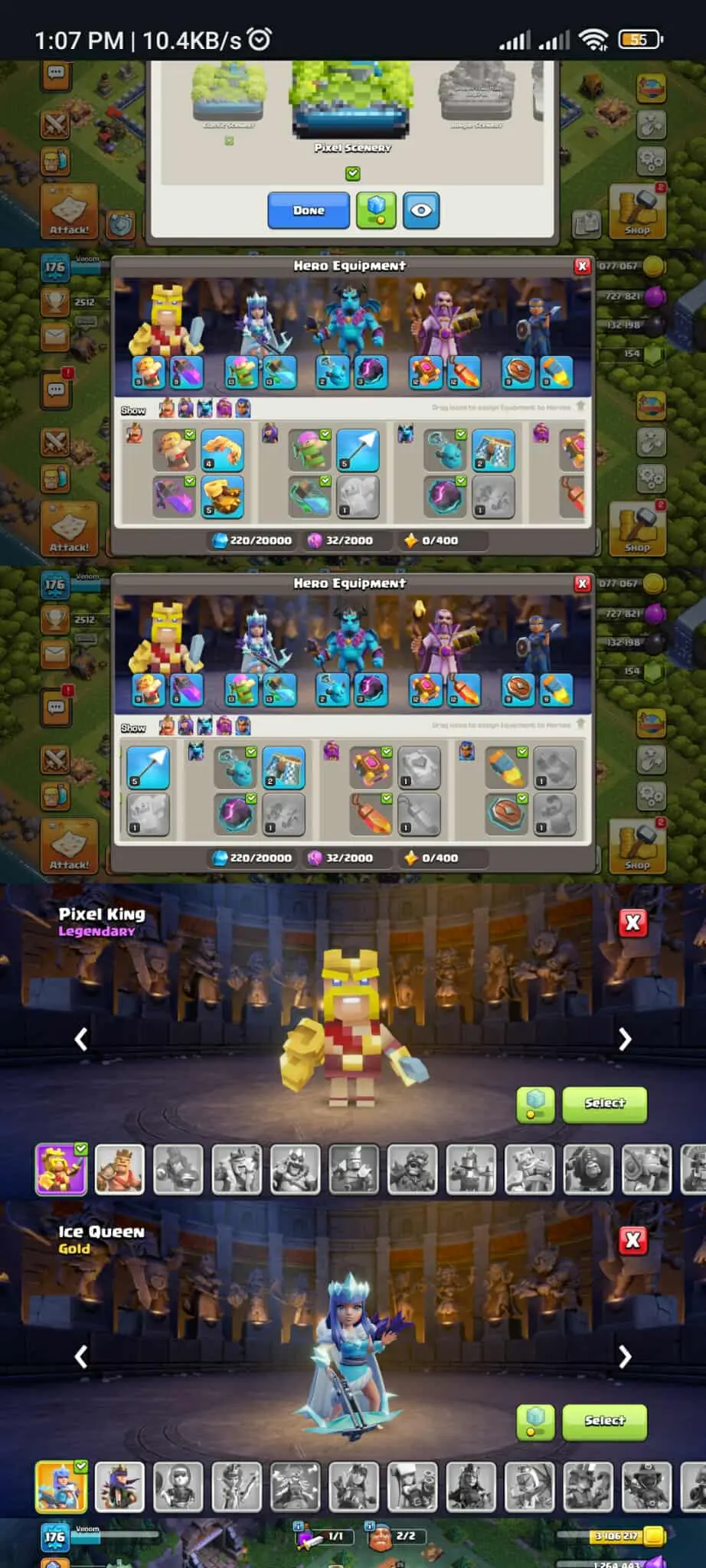 QUEEN MAX | TH13 MAX ID | HEROS: 54-74-40-46-17 | MAX DEFENSE | XP-176 | BLUE WALL | KING SKIN | QUEEN SKIN | PIXEL SENARY | LOTS OF MAGIC ITEMS