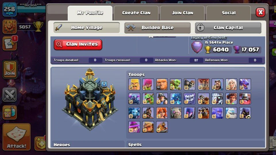 Rare Account 🧨 Th17 Full Max🛍️ Equipment 11 Epic Max 🎯 Skin High Trophy 17K 🌐 Old Account