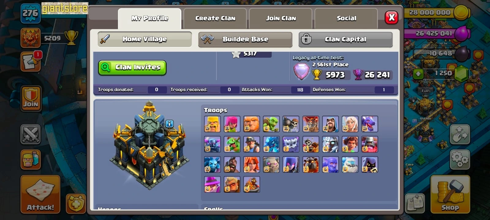 RARE🔥 TH 17 ALL MAX ☠️5 max epic equipment🔥max heroes🔥max troops🔥max pets⚡️all supercharge⚒️max builder base⭐️564 cwl