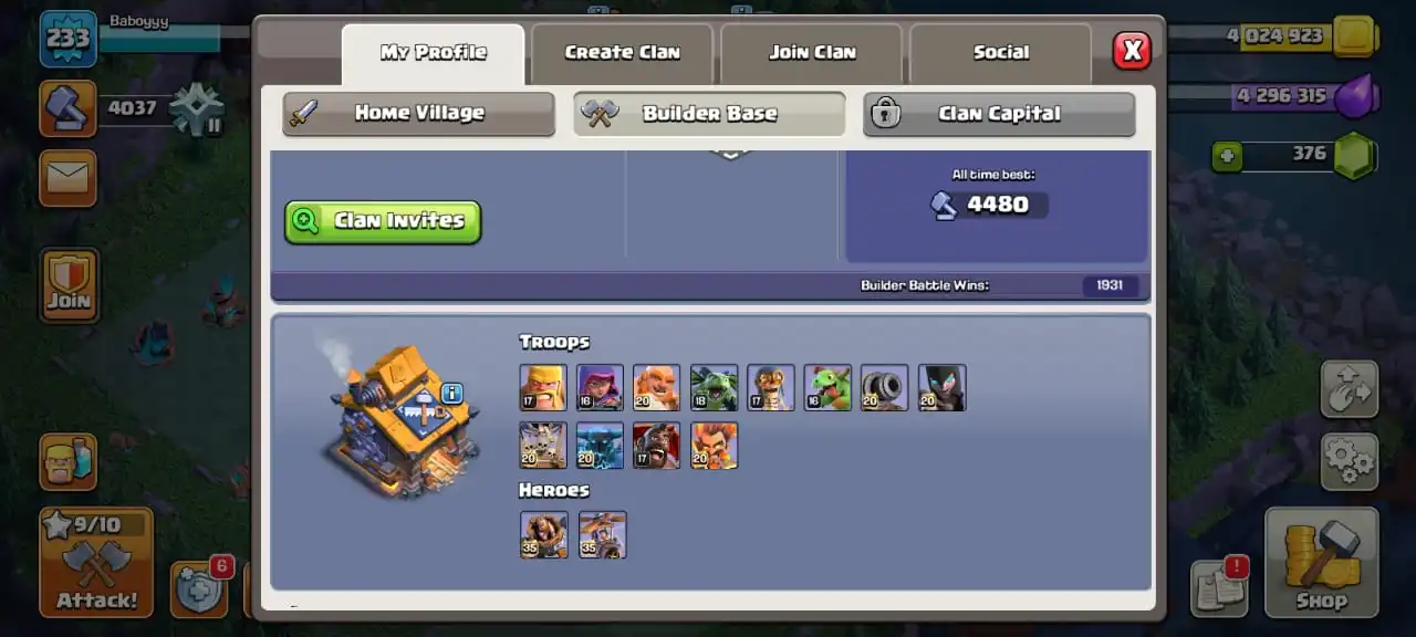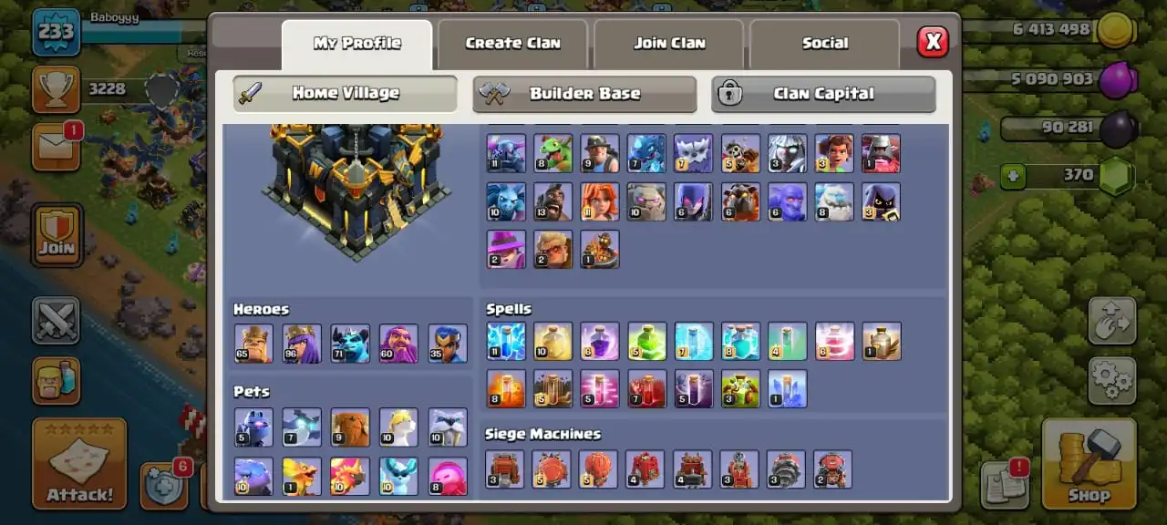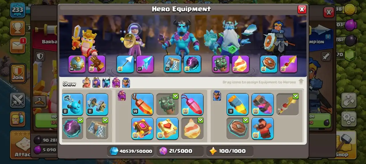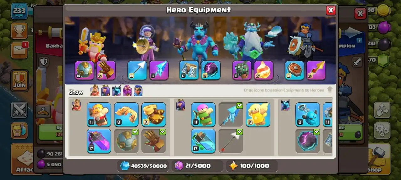 Rare☠️3 max epic equipment✅TH 17 semi max🔥high heroes level 65/96/71/60/35⭐️500 cwl medal⚒️6 builder’s✅2 scenery and 6 heroes skin