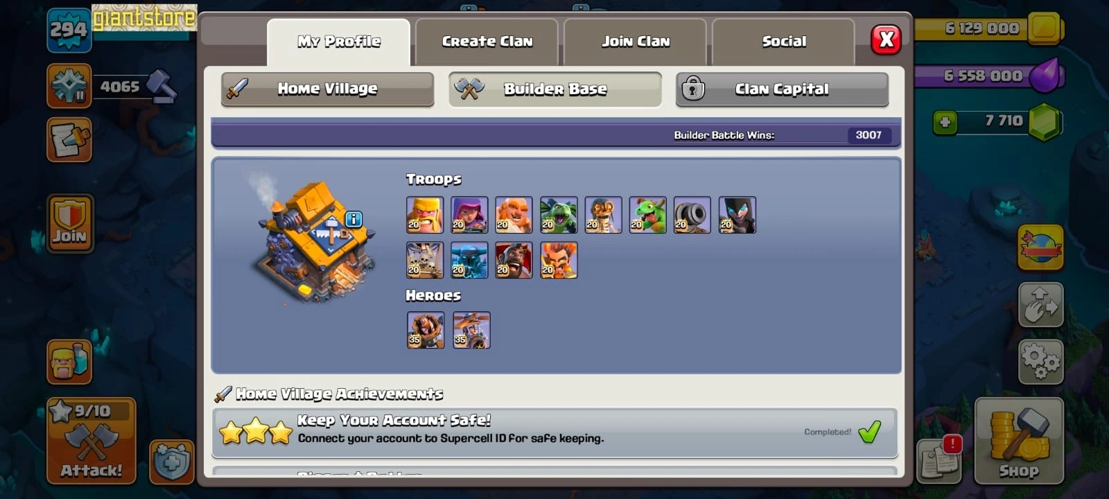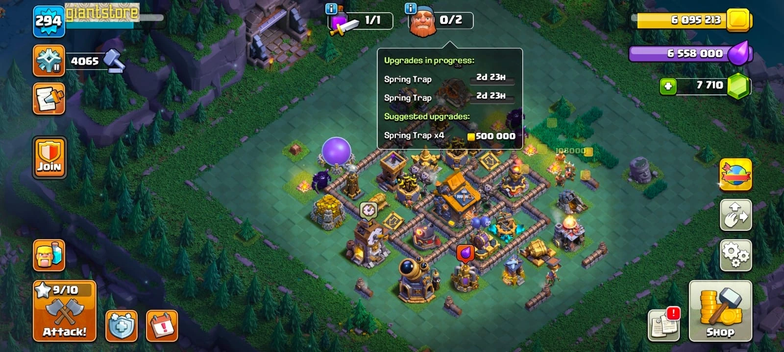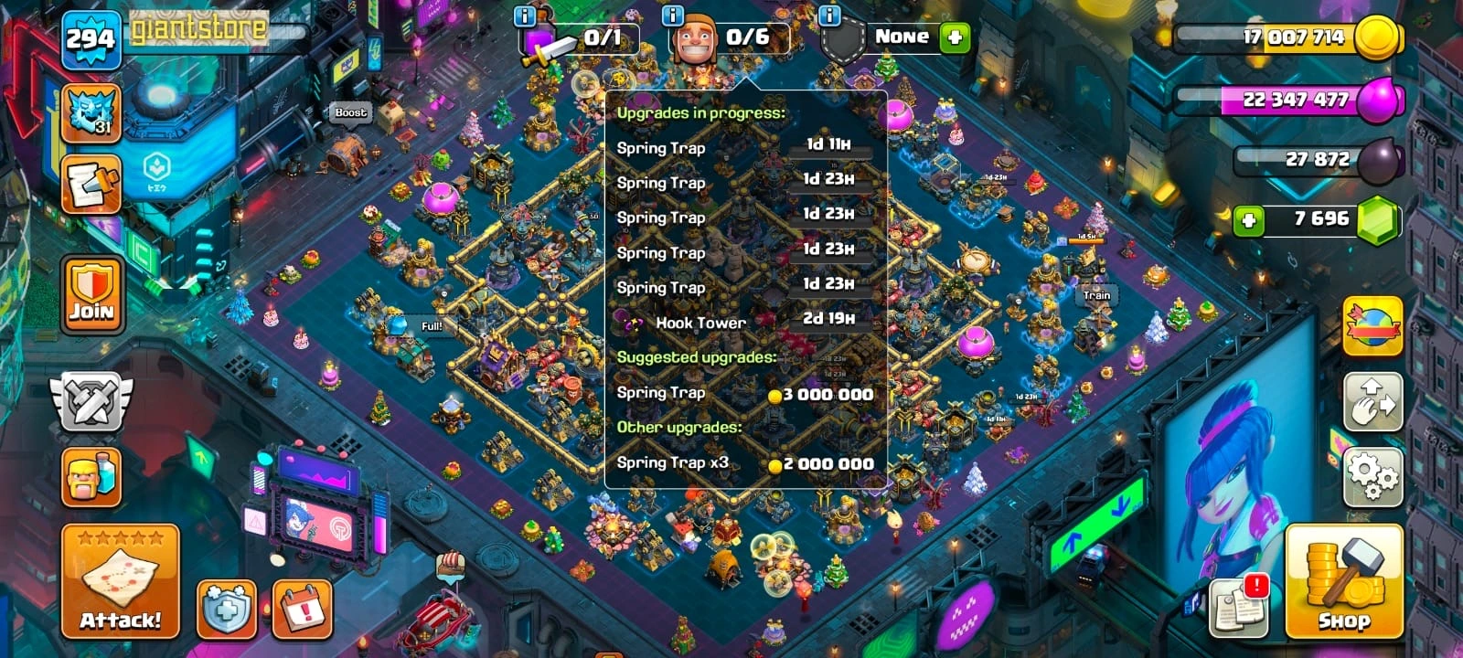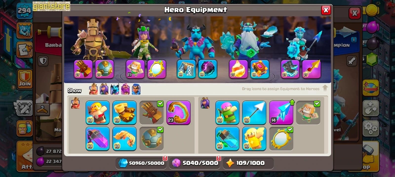 RARE✅HIGH XP 294☠️6 max epic equipment🔥TH 17 ALL MAX🔥max heroes🔥max pets🔥max troops⚒️max builder base⚡️all supercharge defense💎7700 gems⭐️492 cwl medal