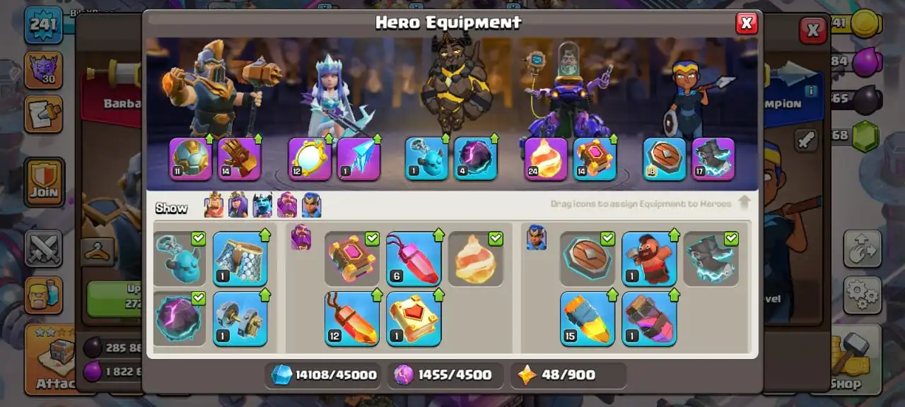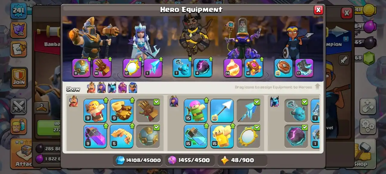 TH 17 ready to warš„max heroes level 95/100/80/75/50ā ļø6 epic equipmentā
