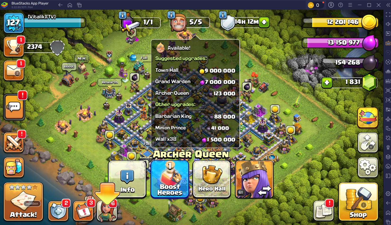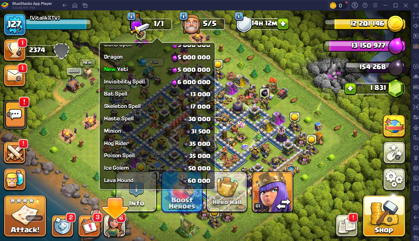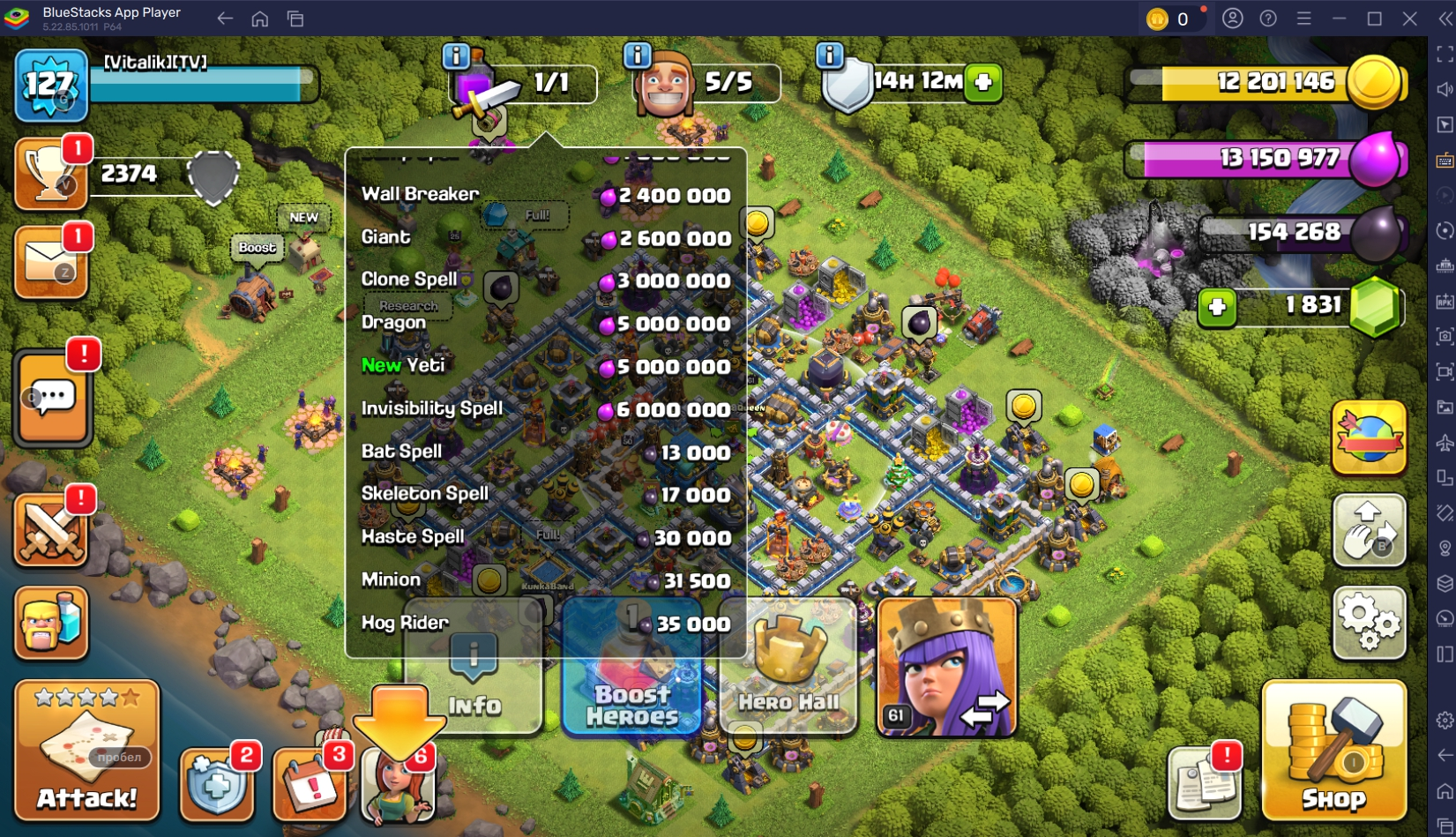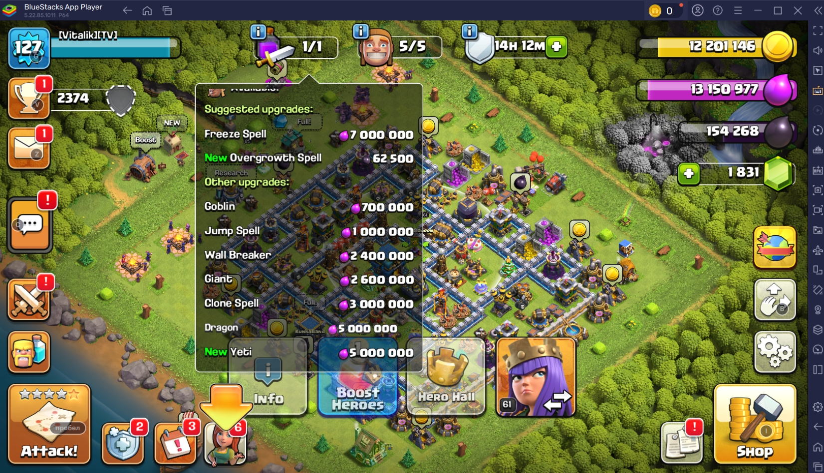 TH 12 💯 127 LEVEL ❤️ 50-61-32-25-0 HEROES 🐼 5/5 BUILDERS ✅ 2374 TROPHIES 🏆 #YUPGYPJLG TAG ACCOUNTS 💯