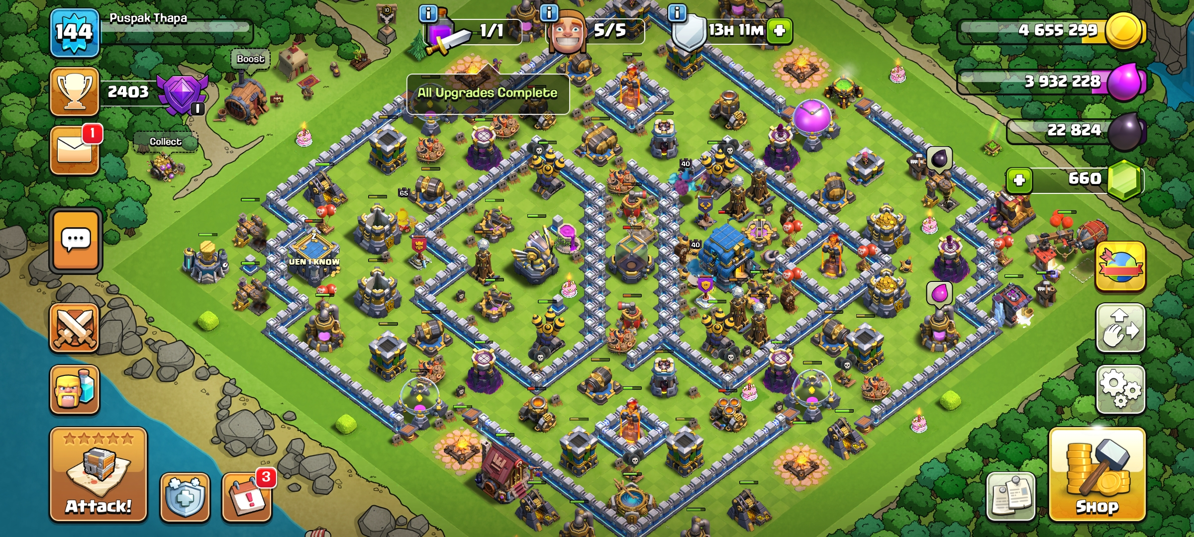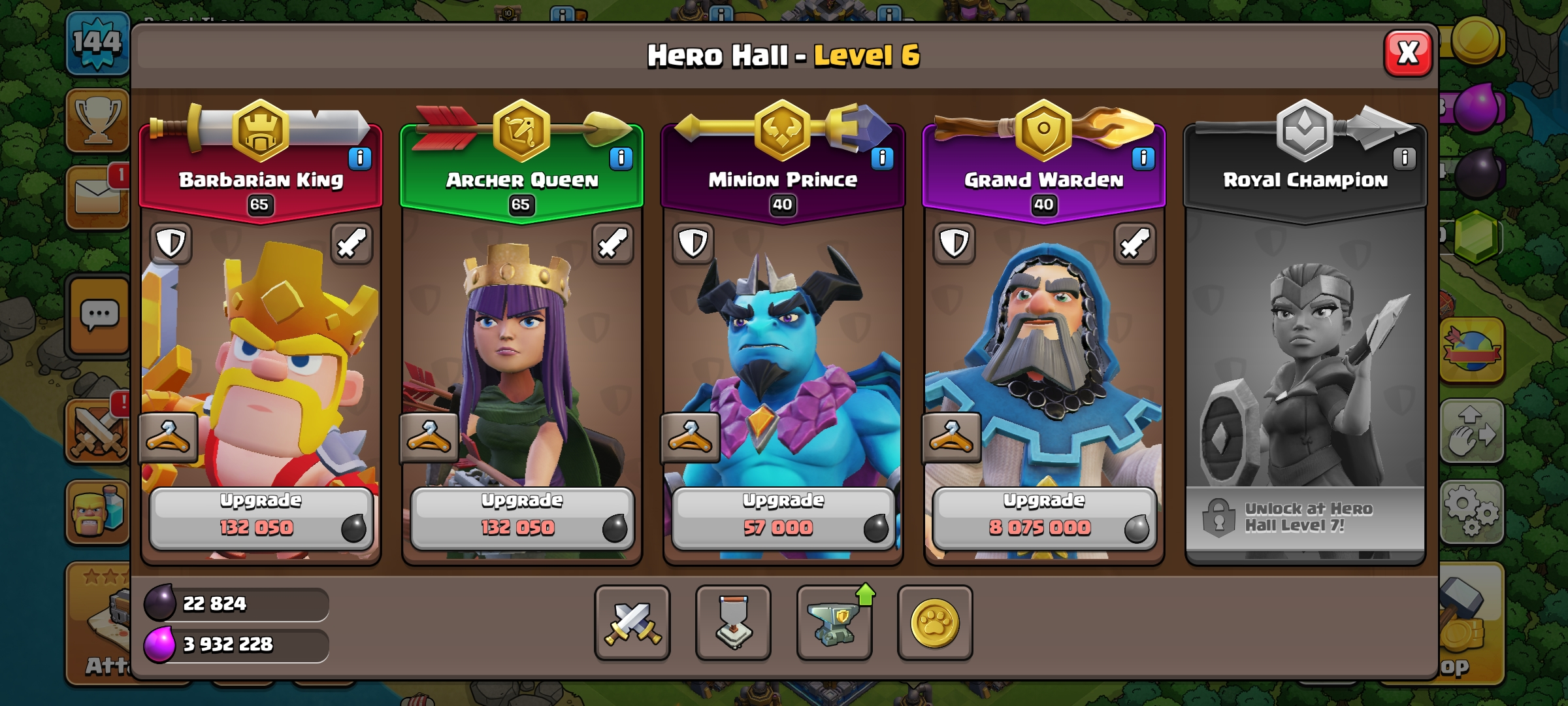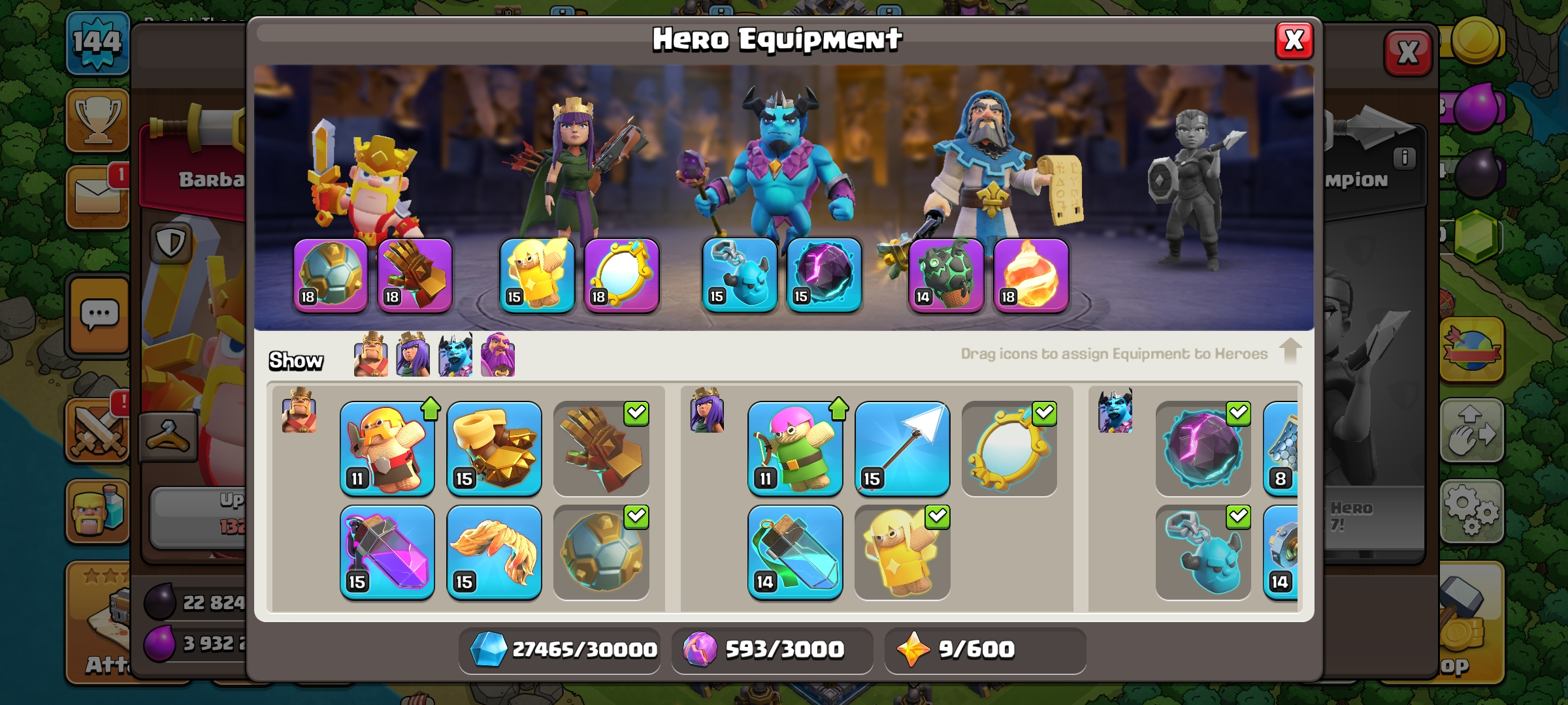 TH 12 FULL MAX FULL~HERO EQUIPMENT ACTIVE- XP 144/BK 65(max) -/AQ 65(max) /PM 40(max)/GW 40(max)-/LOG SUPERCELL ID-/Andoid and ios|SCREENSHOTS ON DESCRIPTION
