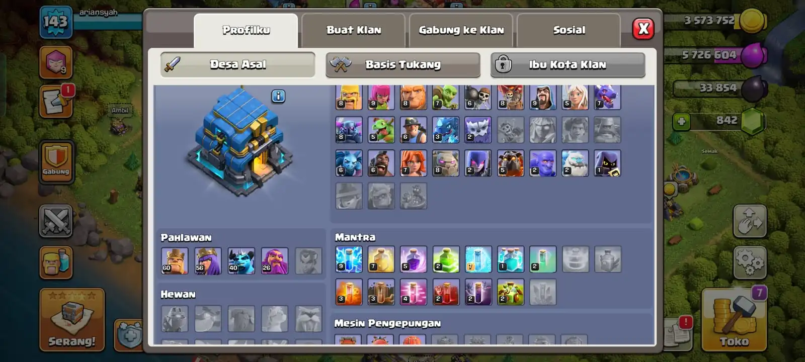TH 12 XP 143 HEROES 60-56-40-26 | GEMS 842 | CHANG NAME ONLINE | WALL GOOD | DEFENSE GOOD| INSTAN DELIVERY