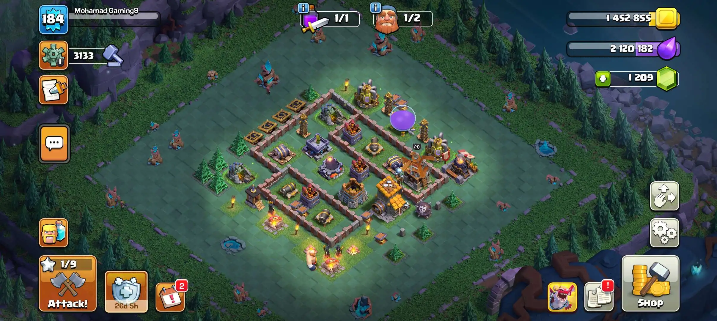 TH 15 fully maxed LEVEL 184 7 EPIC EQUIPMENTS Heros Levels 70/83/57/53/32 Max Builder Base 1260 Gems Full Access