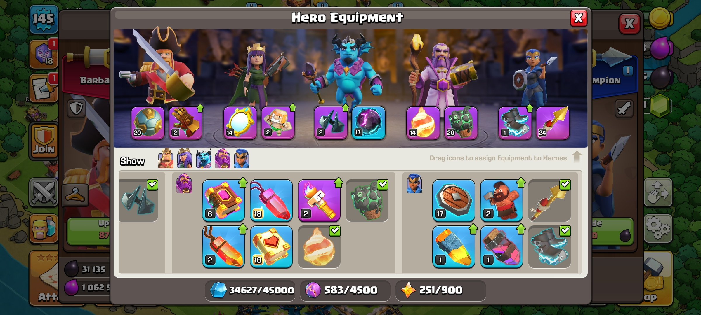 TH 15 HERO EQUIPMENT EPIC FULL SET- XP 145/BK 51 -/AQ 51 /PM 46 /GW 31-/RJ 20-/LOG SUPERCELL ID-/Andoid and ios|SCREENSHOTS ON DESCRIPTION
