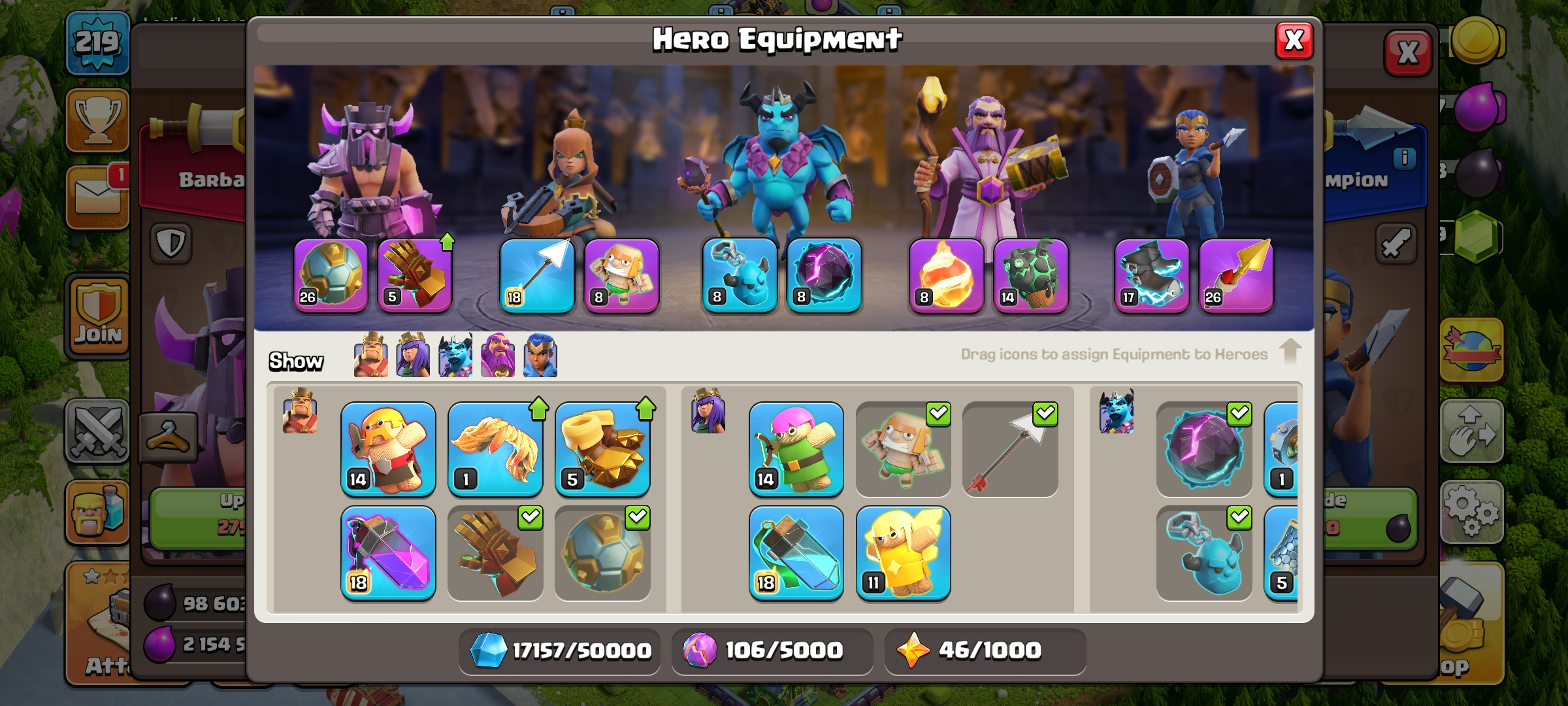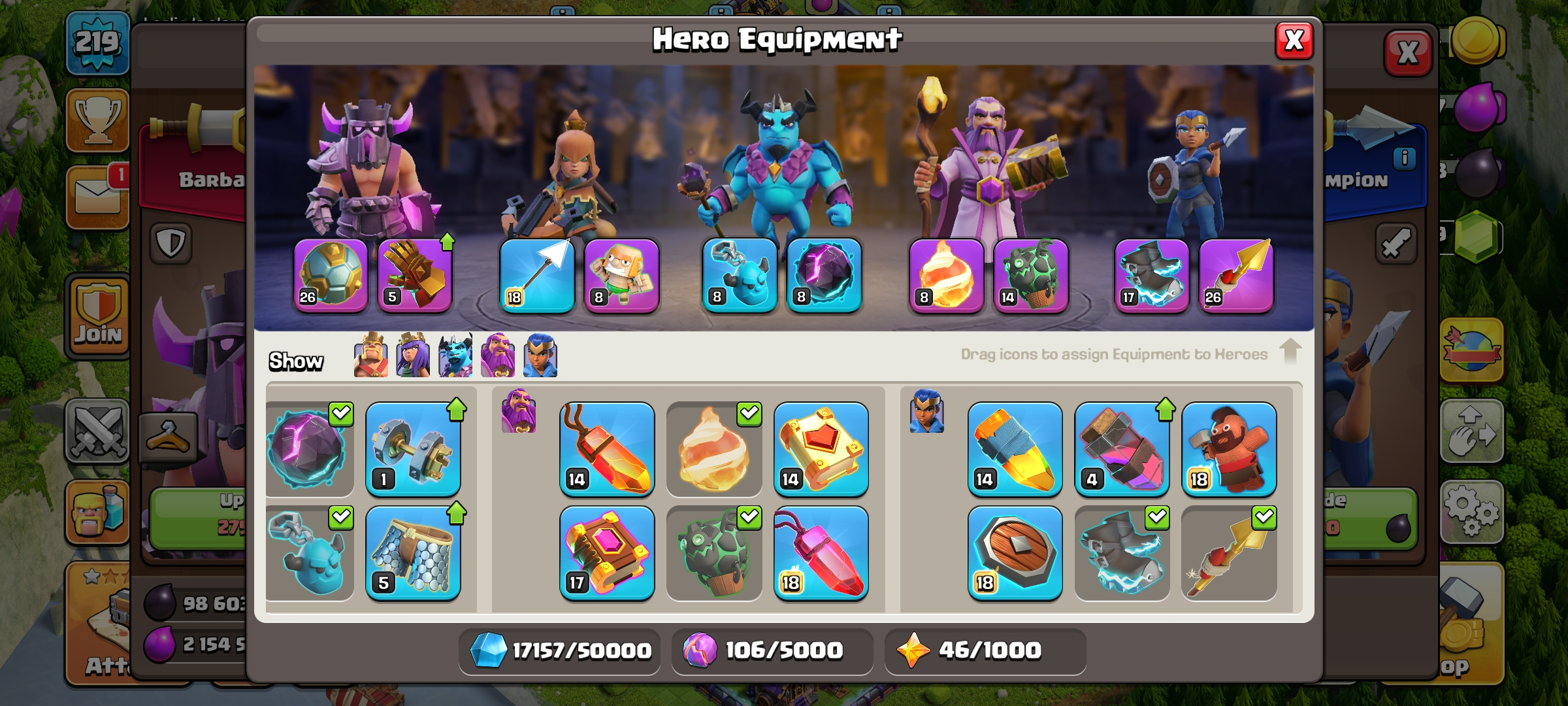 TH 16 ALMOST MAX ~HERO BIG~HERO EQUIPMENT ACTIVE(EPIC)- XP 219/BK 90/AQ 91 /PM 70 /GW 67-/RJ 42/LOG SUPERCELL ID-/Andoid and ios|SCREENSHOTS ON DESCRIPTION