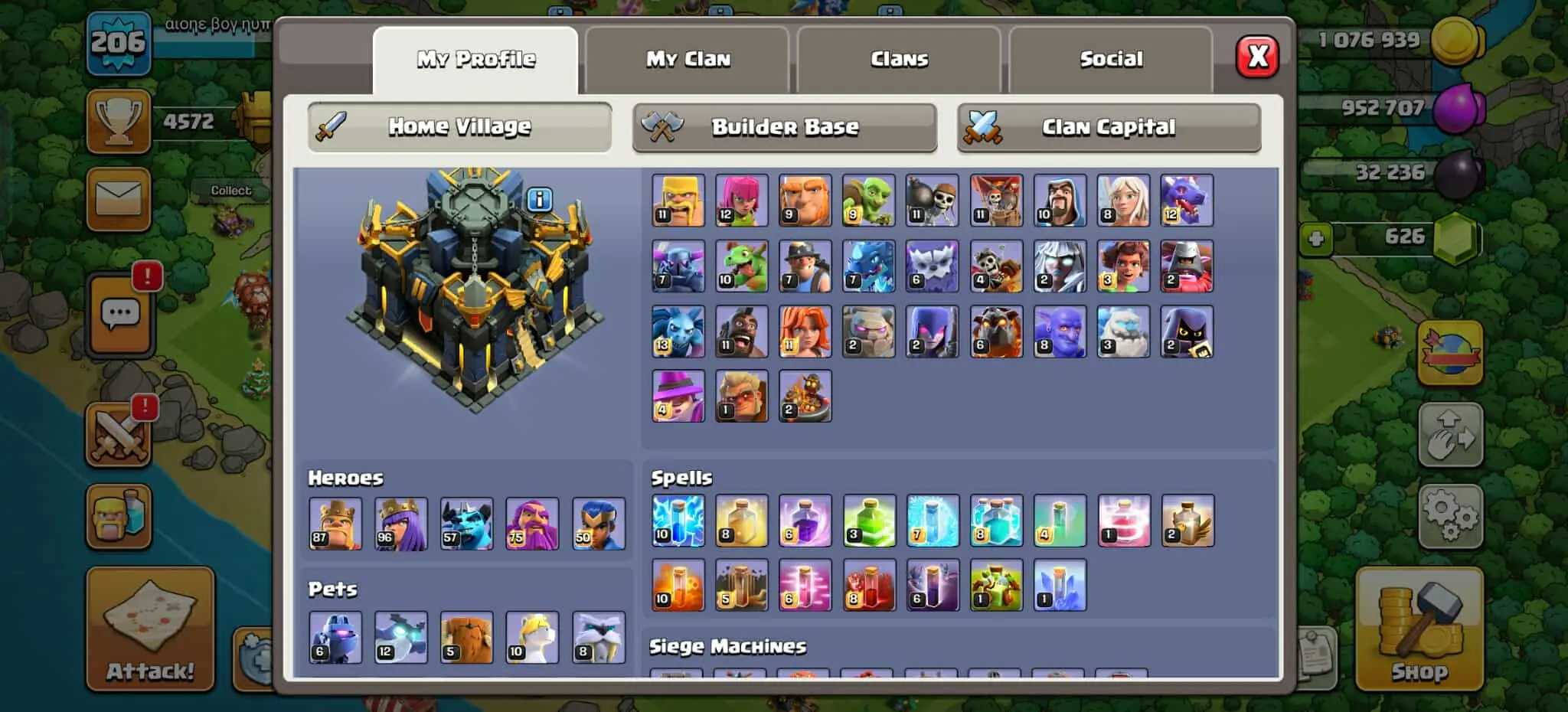 TH 17 Near Max🎀Heroes 88-97-57-75-50🎀Very High Epic🎀Near Max Defence+Troops🎀6 th builder🎀Nc possible🎀Best Deal🎀