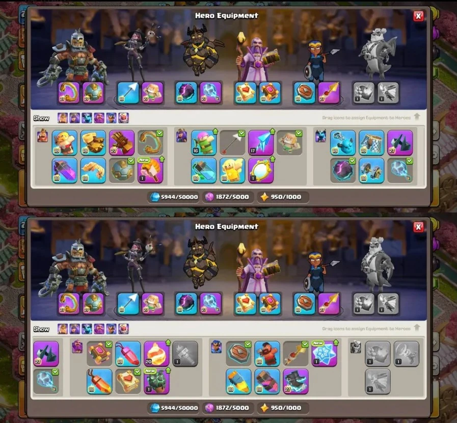 TH 18 | 5 HERO MAX | 8 EPIC EQUIPMENTS MAX | 950 STARY IN INVENTORY