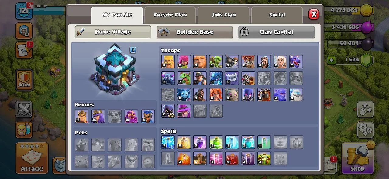 🌟 TH13 🔥 121 LVL 👑 1538 GEMS 😎 HEROS 46-35-35-8 🔥 IOS/ANDROID 🚀 FULL ACCESS