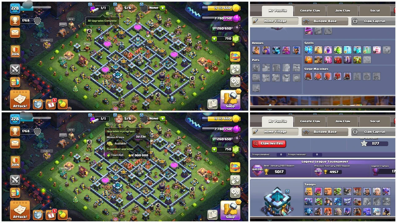 TH13 full Max (11 Skins) 💫 Level 228 🧝♀️ Heroes 75_75_41_50_25 🎯 Gems 750 💥 2 Scenery 🦅 Nc 1000 Gems (Android &iOS) 🌀 M3178