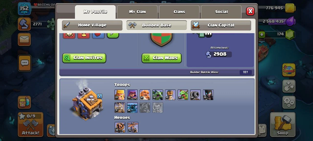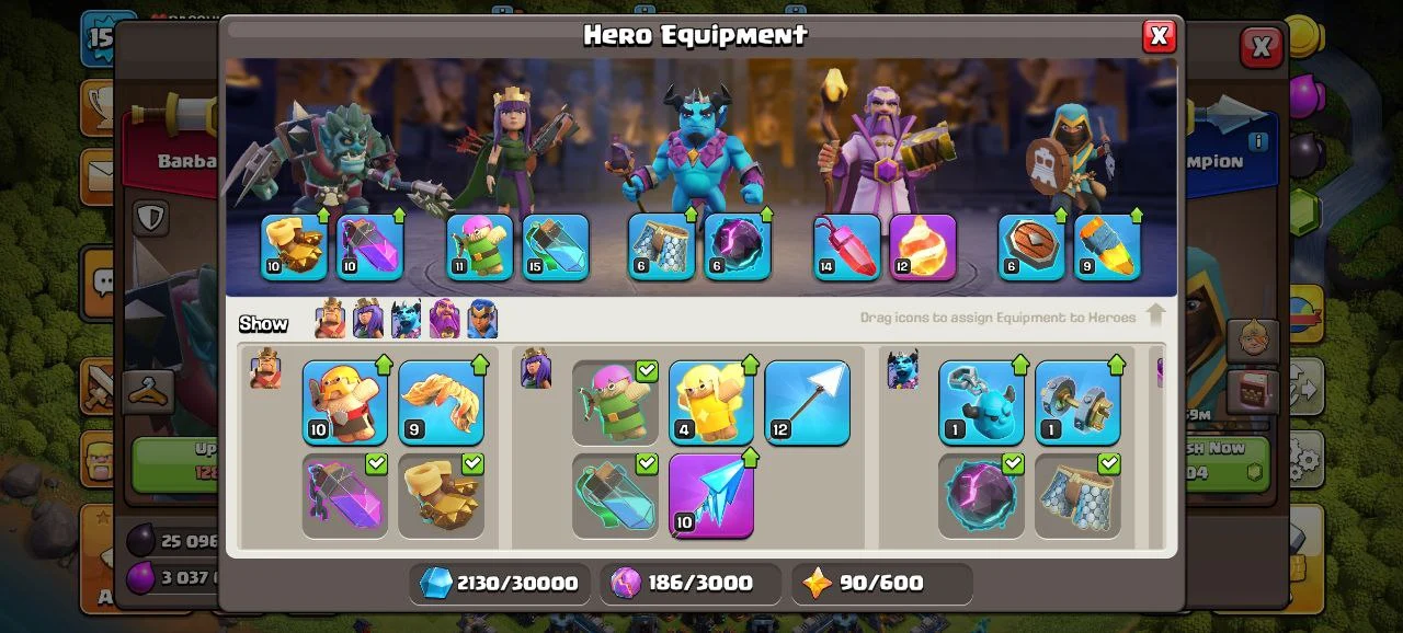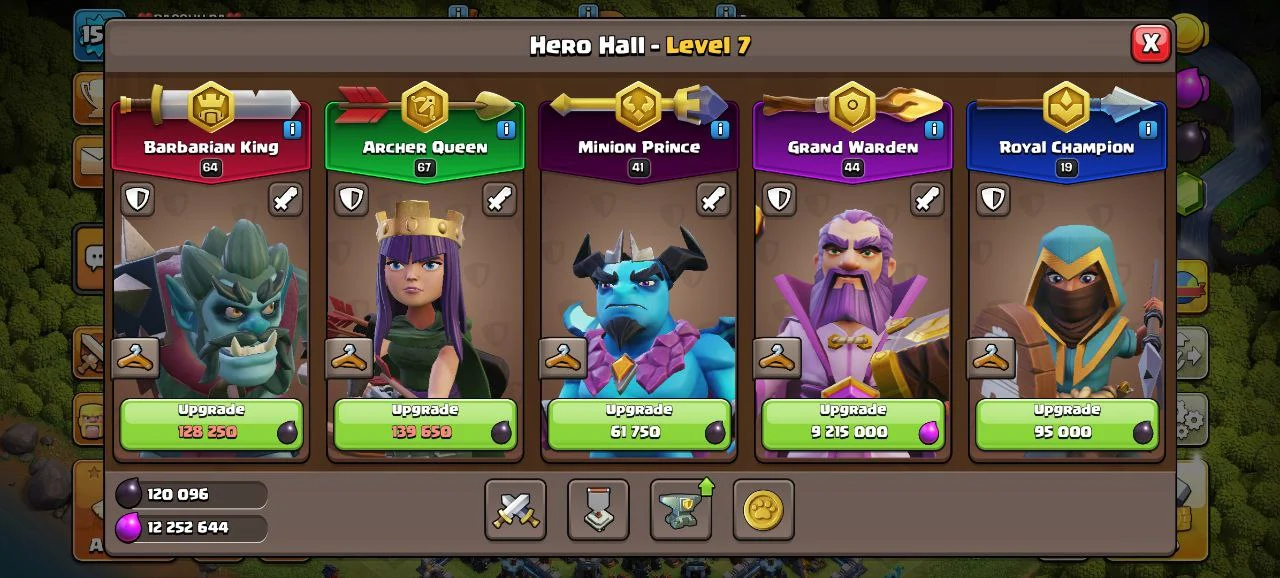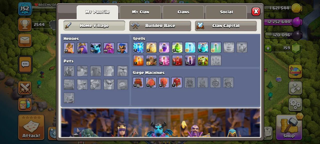 📍 TH13 | XP 152 | Heroes 64-67-41-44-19 | 2 Premium Hero Skins | Magic Items & Equipment | Full Access
