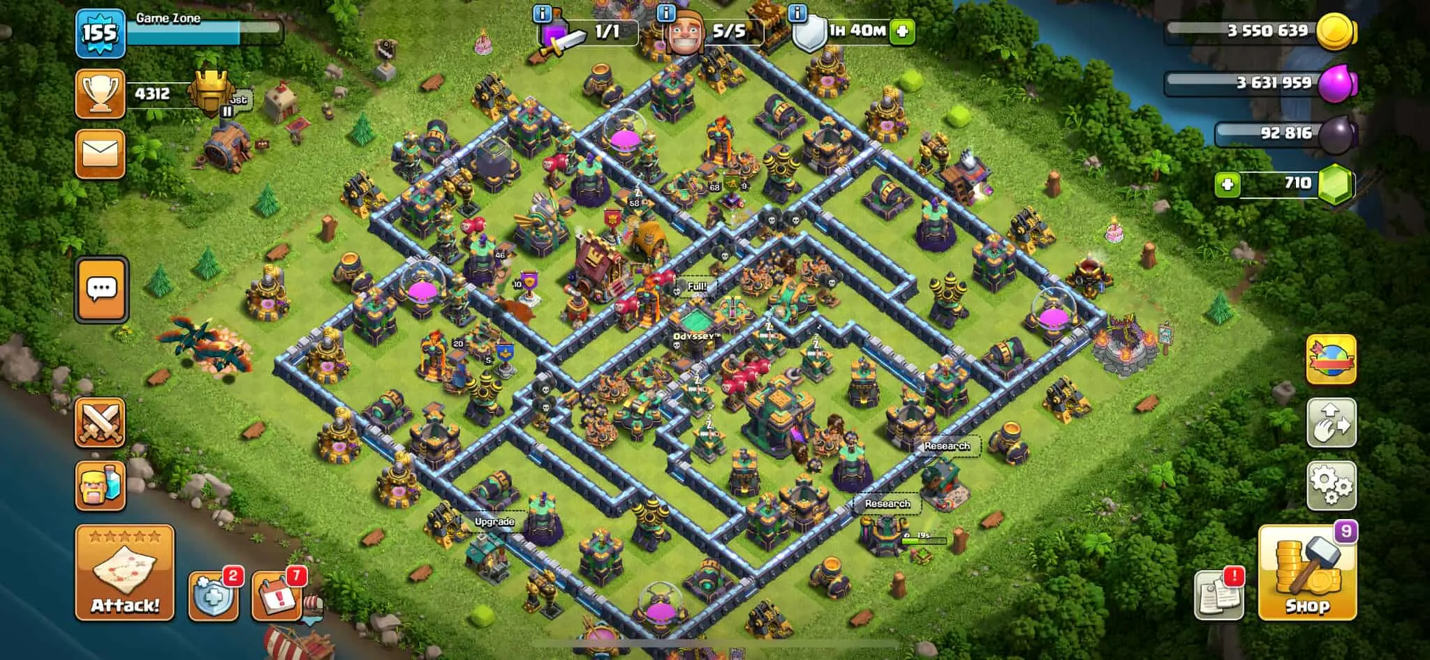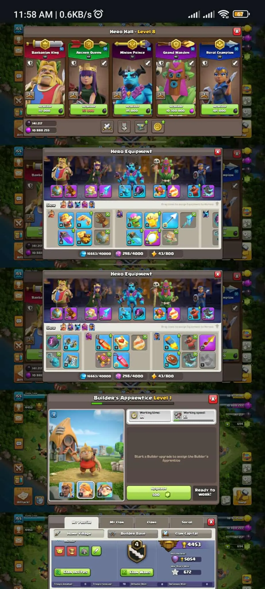 TH14 MAX ID | ALL EQUIPMENT 20LVL+ | HERO: 58-68-51-45-20 | 8x EPIC | XP-155 | DARK BLUE WALL | JUNGLE SCENERY