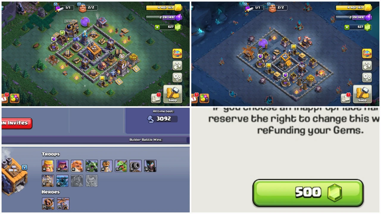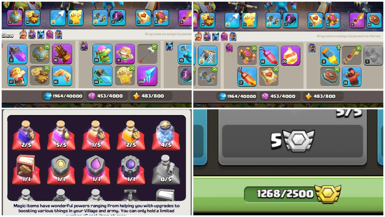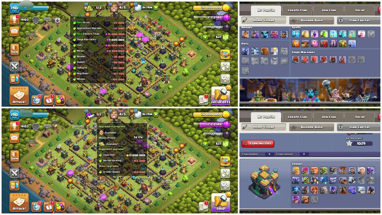 TH14 Near Max (9 Skins) 💥 Level 190 🧮 Heroes 70_70_46_55_30 💵 Gems 627 ⛏️ 6 Epic equipment 🔮 Nc 500 Gems (Android &iOS) 🛠️ M3343