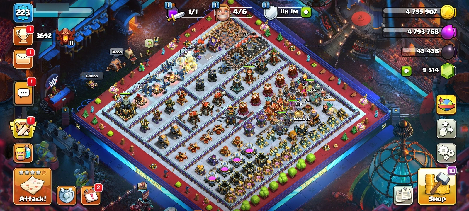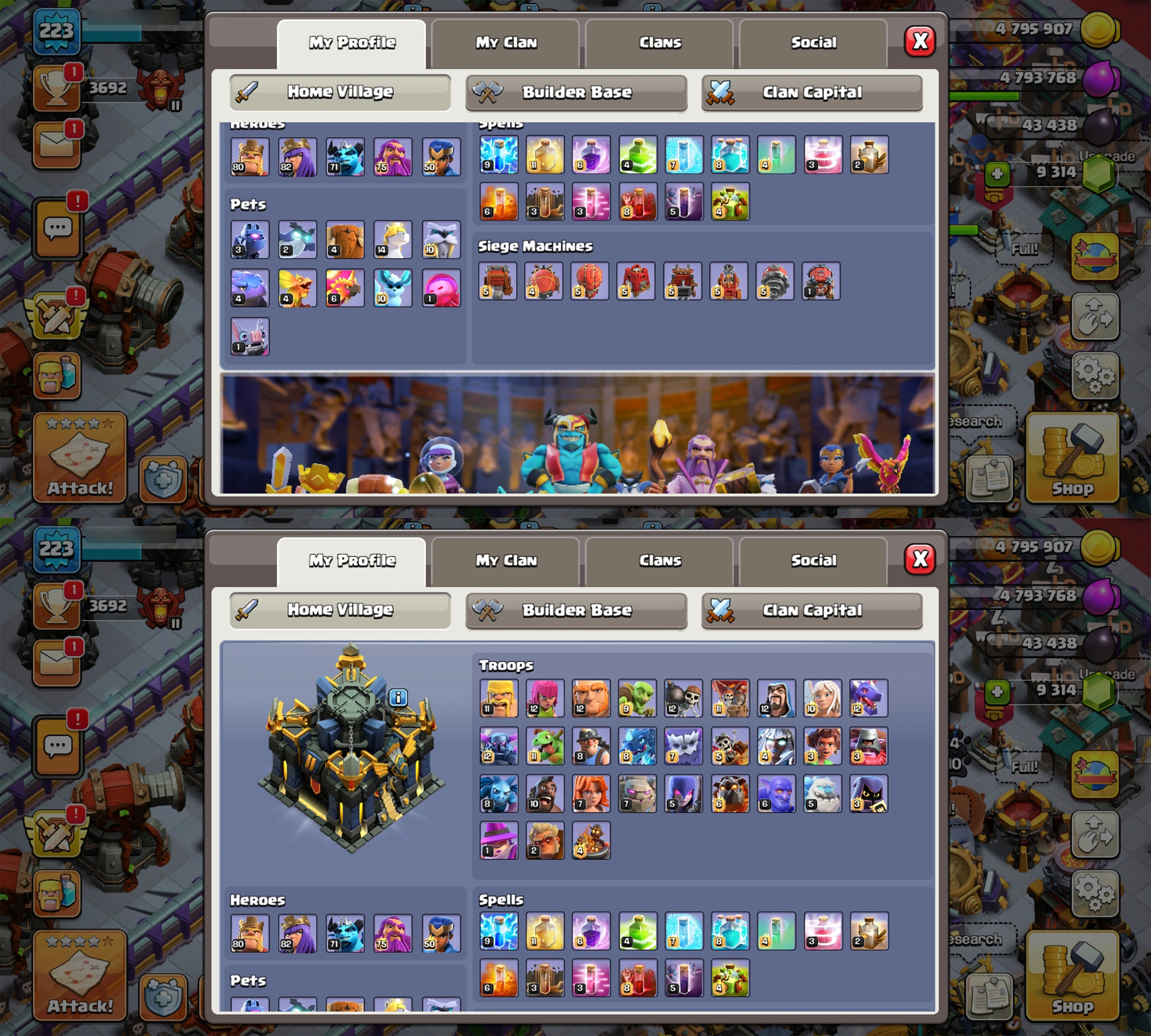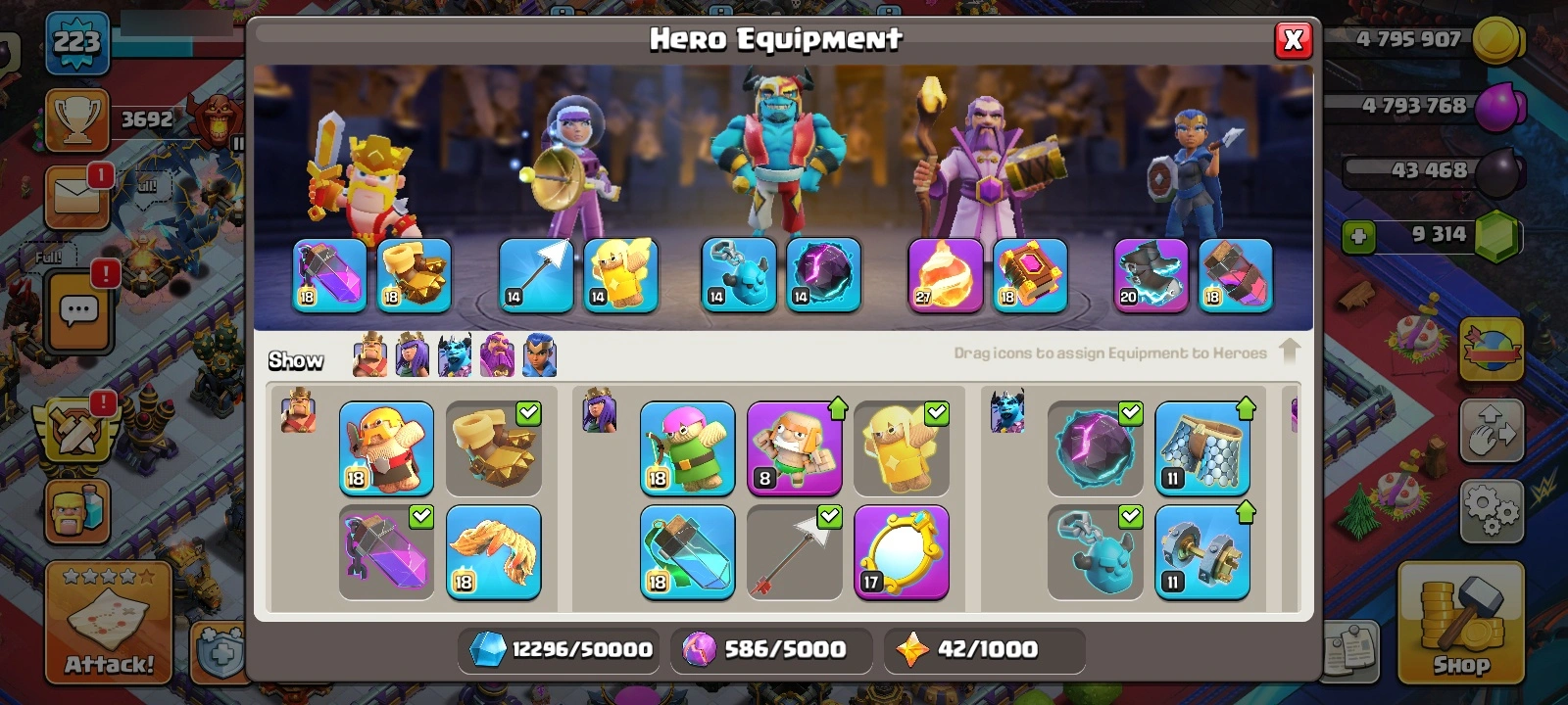 TH17 3 STAR🔥76% MAX 🔥EQUIPMENTS 78% 🔥1 RareScenery🔥Lv223🔥7SeigeMax