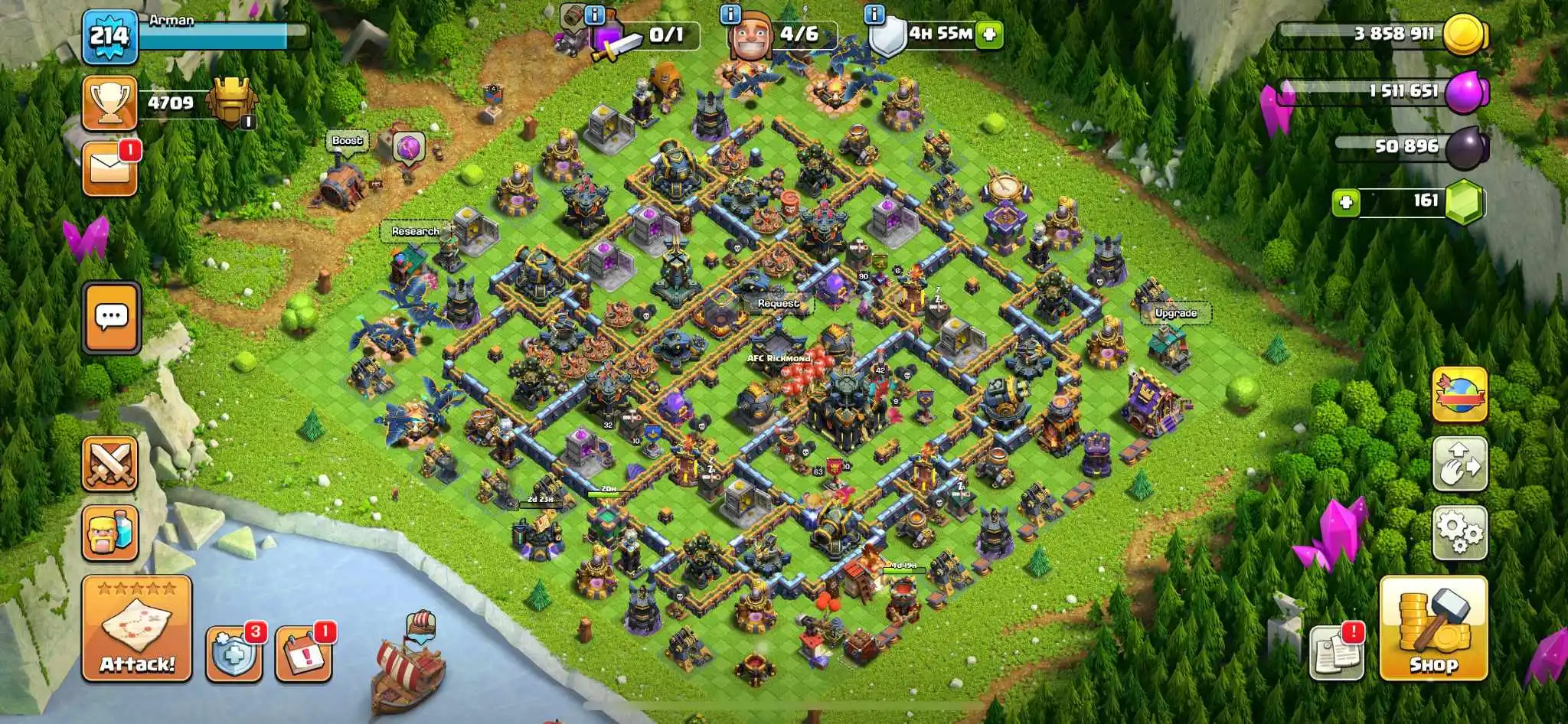 TH17 MAX ID | 5x EPIC | HERO'S: 63-89-42-43-32 | ALMOST MAX DEFENSE | MAGIC SCENERY | XP-214 | NAME CHANGE FREE | 5 SKIN | 245+ CWL MEDEL