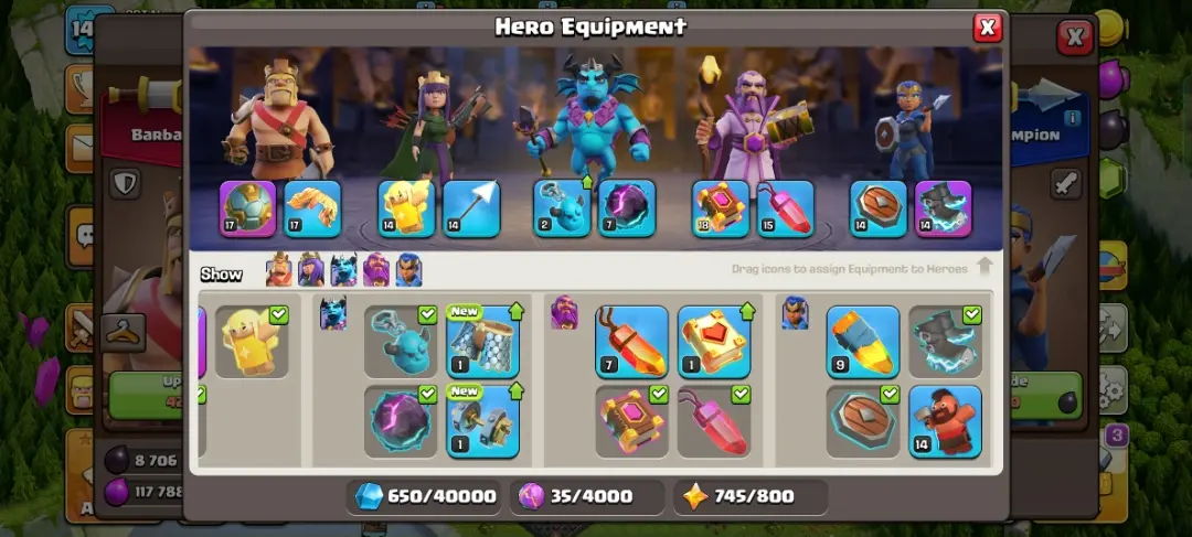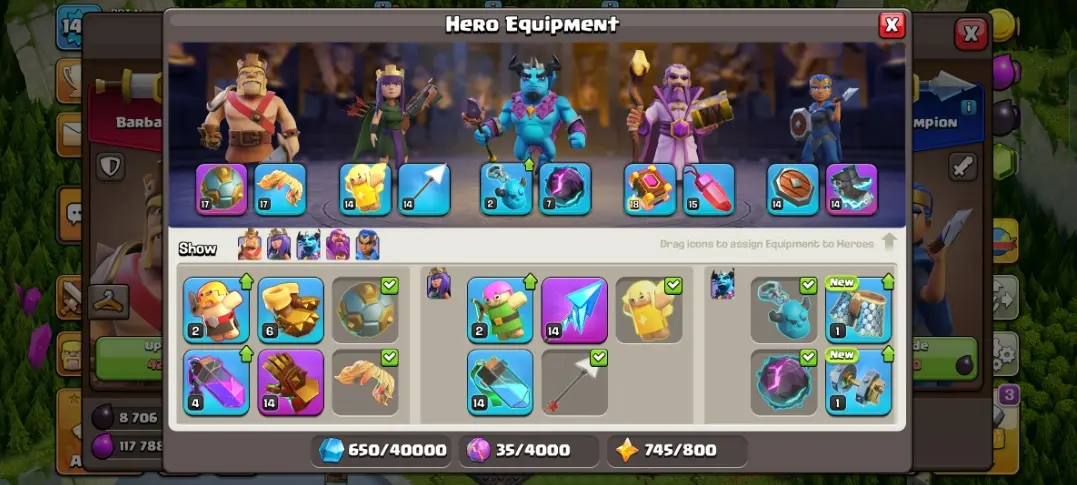 TH17➤EXP-143➤HERO:34-42-41-32-15➤CLASH-A-RAMA SCENERY➤4 EPIC EQUIPMENT➤HUGE MAGIC ITEM➤NC 1000 GEM➤INSTANT DELIVERY