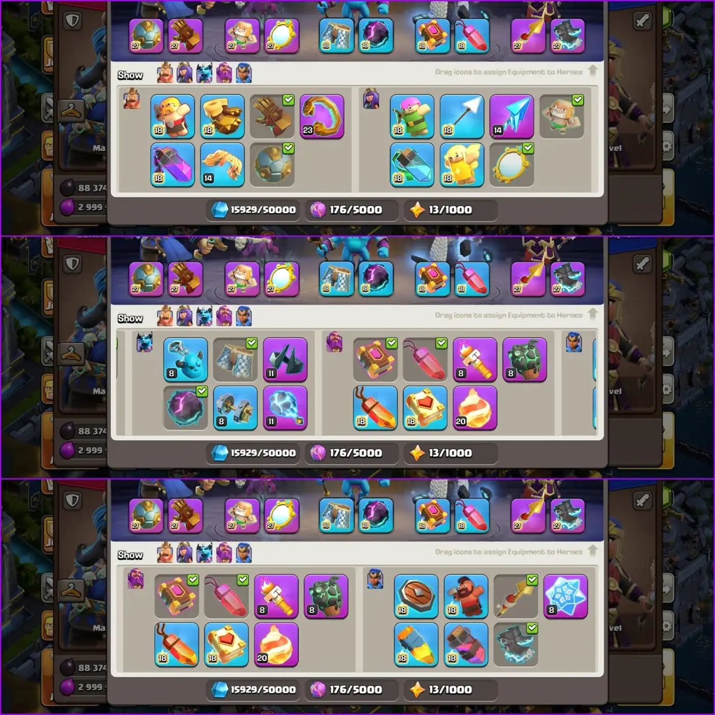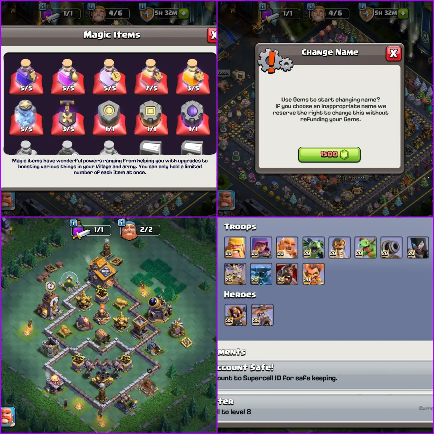 TH18 Max : 36 Skins | Crazy Stacked Old, Rare & Limited Obstacles/Trees Since 2015 | Rare All 14 Epic Equipments : 6 Epic Max | Android/iOS