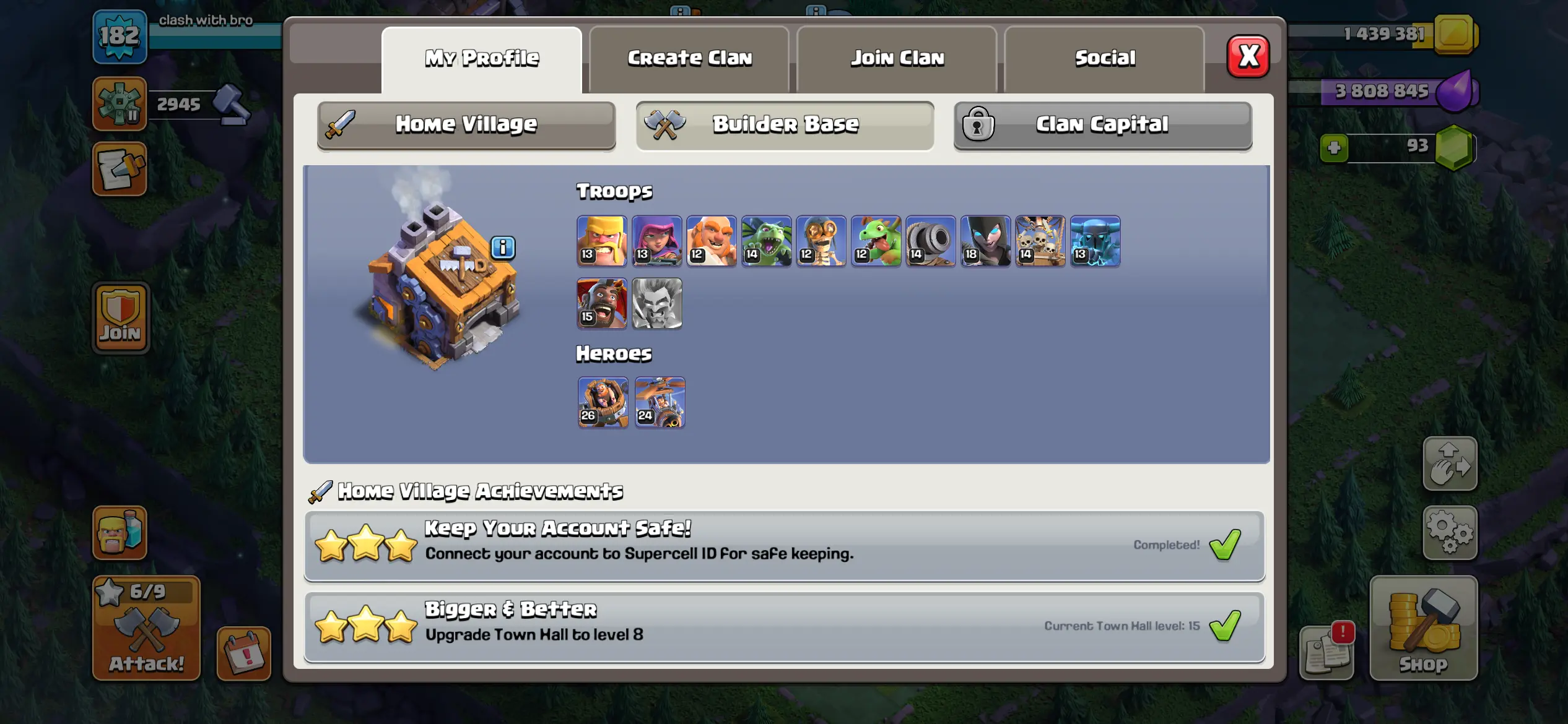 🔥[-VERY GOOD-]🔥TH 15 SEMI MAX🔥XP 182 [76-79-55-53-28-1]🔥MAGIC ITEM READY🔥11 EPIC EQUIPMENT🔥SEMI MAX DEFENSE🔥CHEAPEST🔥ALL NICE SKIN HEROES🔥FULL ACCES & GUARANTEED [G1048]