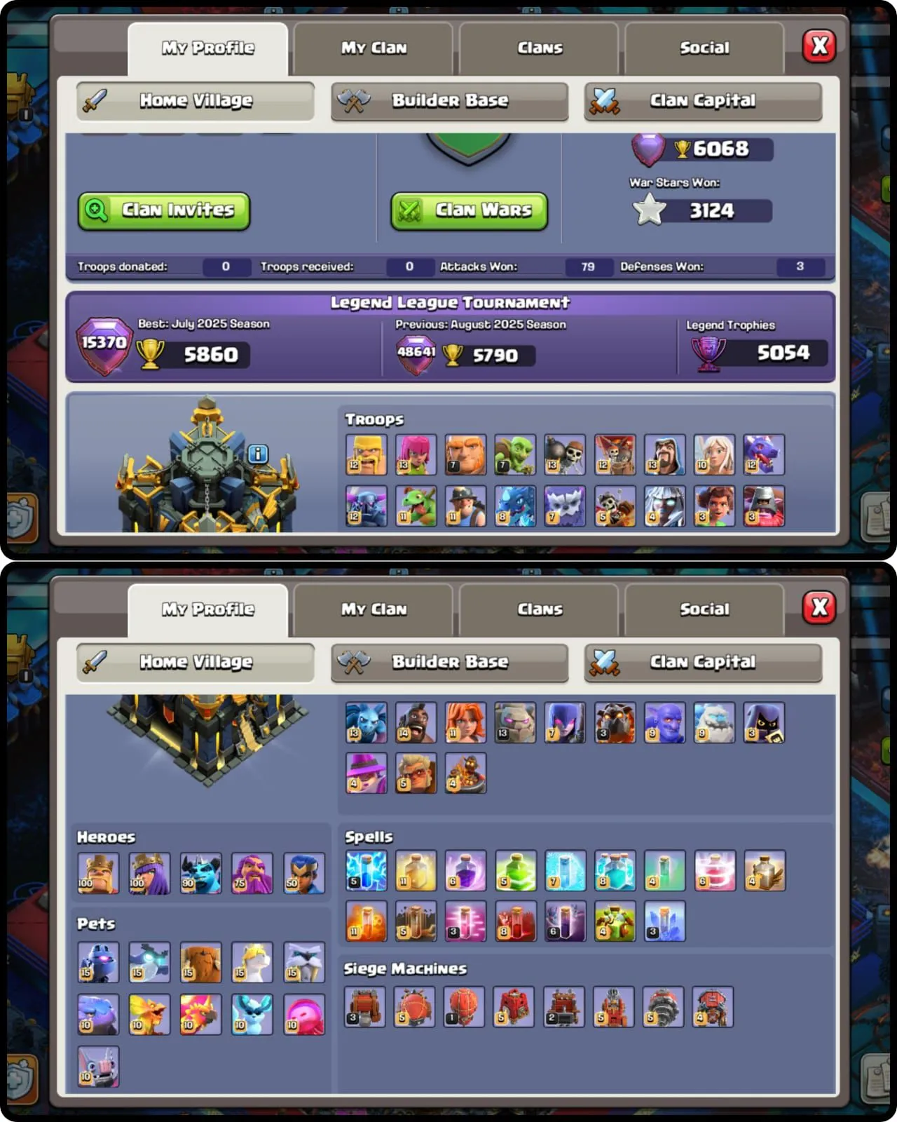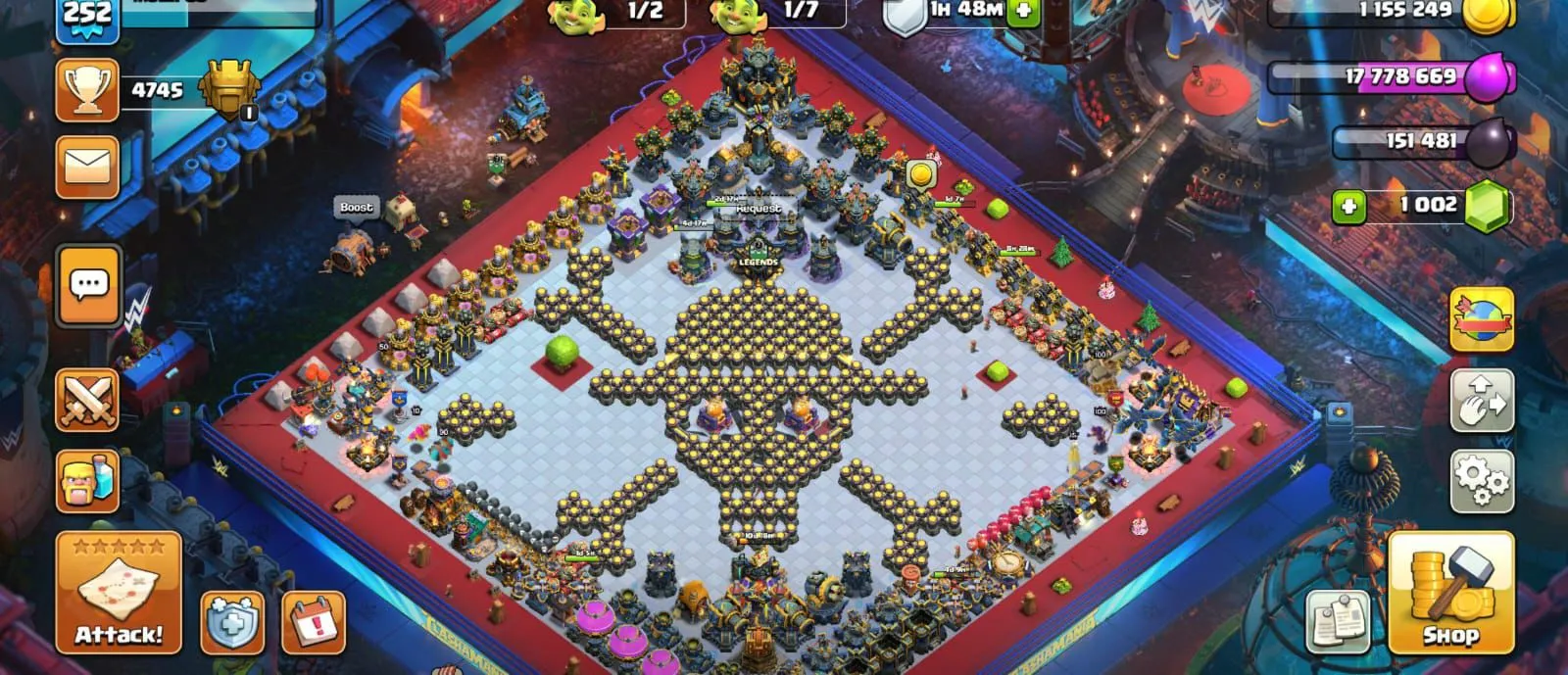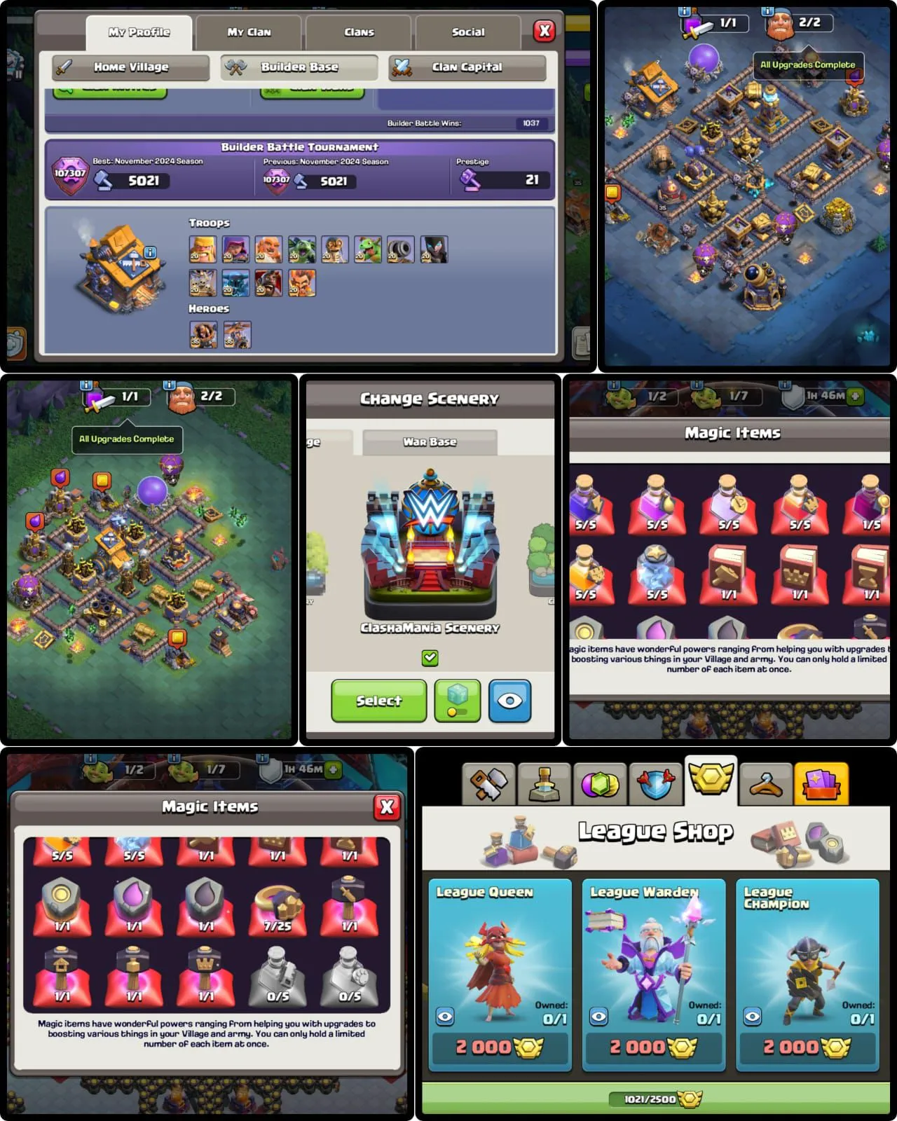 WWE CLASHAMANIA SCENERY🔥TH 17 ALMOST MAX LEVEL 252🔥MAX BUILDER BASE TH17🔥DARK CROWN🔥TOWNHALL 17 MAX🔥WALLS MAX🔥PETS MAX🔥[90-100-100-75-50]🔥1021 CWL MEDALS