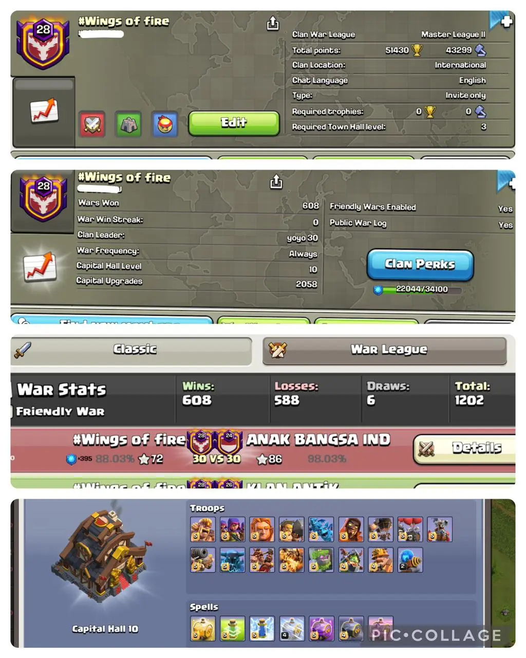 🔥[CC: FULL MAX 10!!]🔥NAME- #Wings of Fire | LVL 29 ALMOST🥵 | 💥WARLOG W/L/D:608/588/6| CWL League: MASTER 2☠️| ⚡🔥