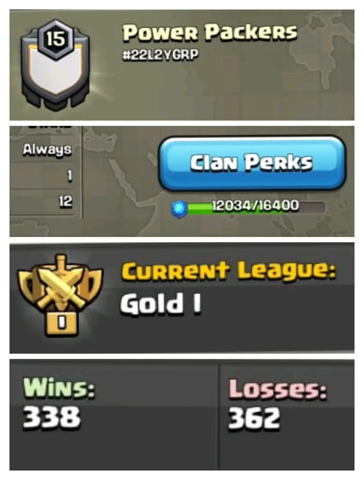 Lvl 15 Power Packers | English Name | Gold League 1 | 338 Wins and 362 Loss | Cheapest | Instant