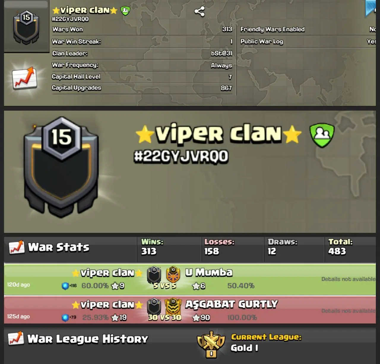 || VIPER CLAN || ENG NAME | LVL - 15 | GOOD STATS | 313 WON| CC 7 | GOLD 1 | CHEAP | INSTANT DELIVERED