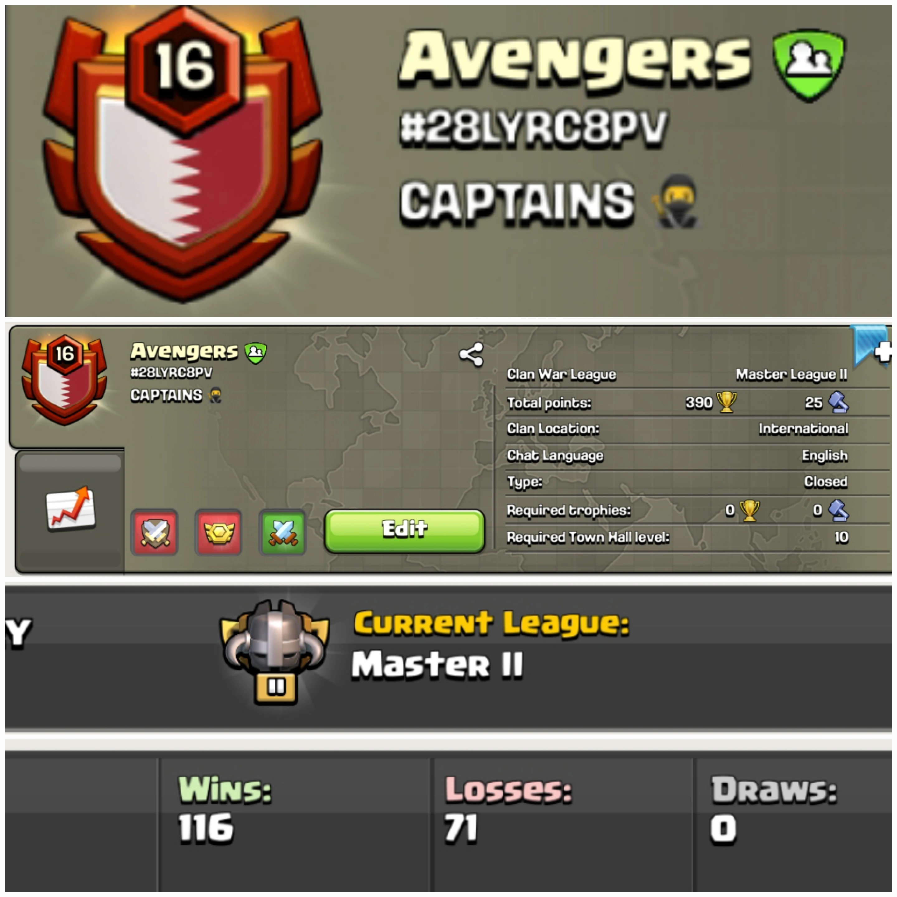 Avengers !! LEVEL 16 !! MASTER LEAUGE 2 !! WIN 116 LOSS 71 !! BEST NAME !! AFFORDABLE !! FAST DELIVERY