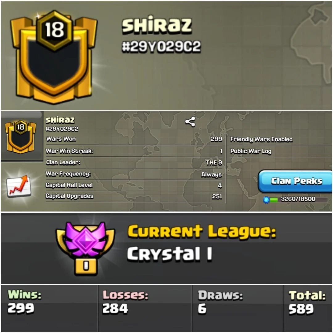 Level 18 | Name - SHiRaz| Clan Capital - 4 | Crystal League | Good Warlog | Fast Delivery