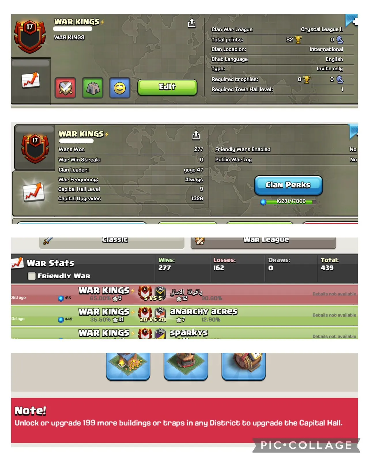 🔥NAME- kings | ALMOST LVL 18🥵| 💥WARLOG W/L/D:307/359/4 | CWL League: GOLD 2🏆| CC: ALMOST 9 !!💥