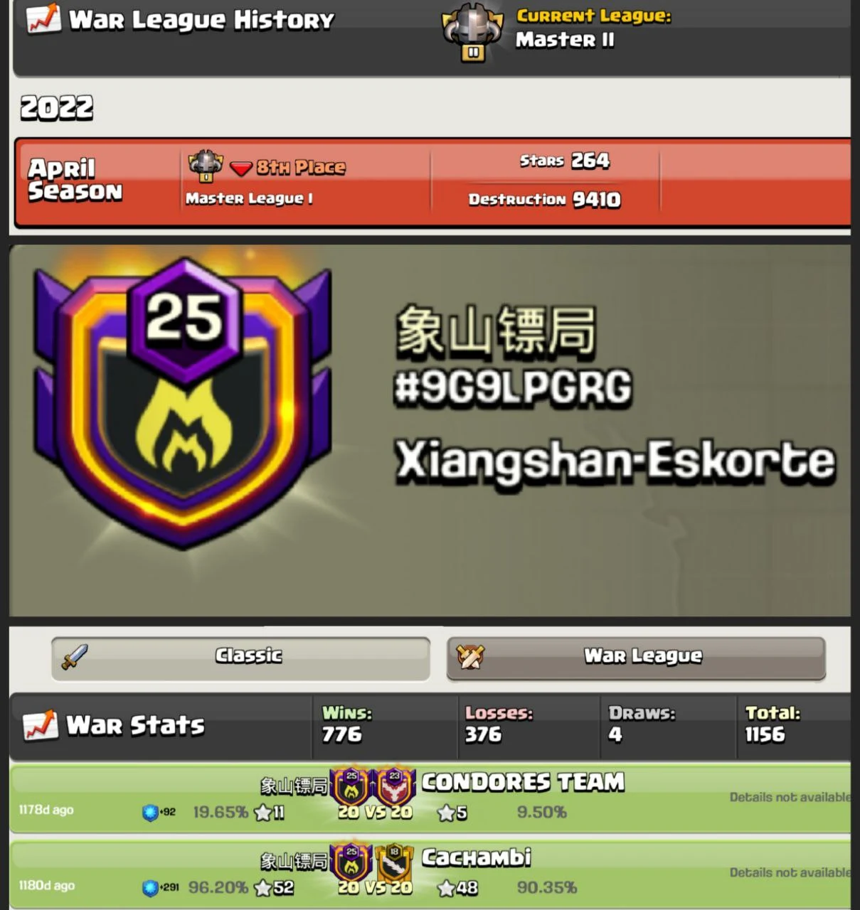 🔥 [MASTER 2 + CC MAX ] 🏆NAME : LEGENDS 🥶 LEVEL : 28.9 ⛈️ WARLOG W-L-D : 478-405-3