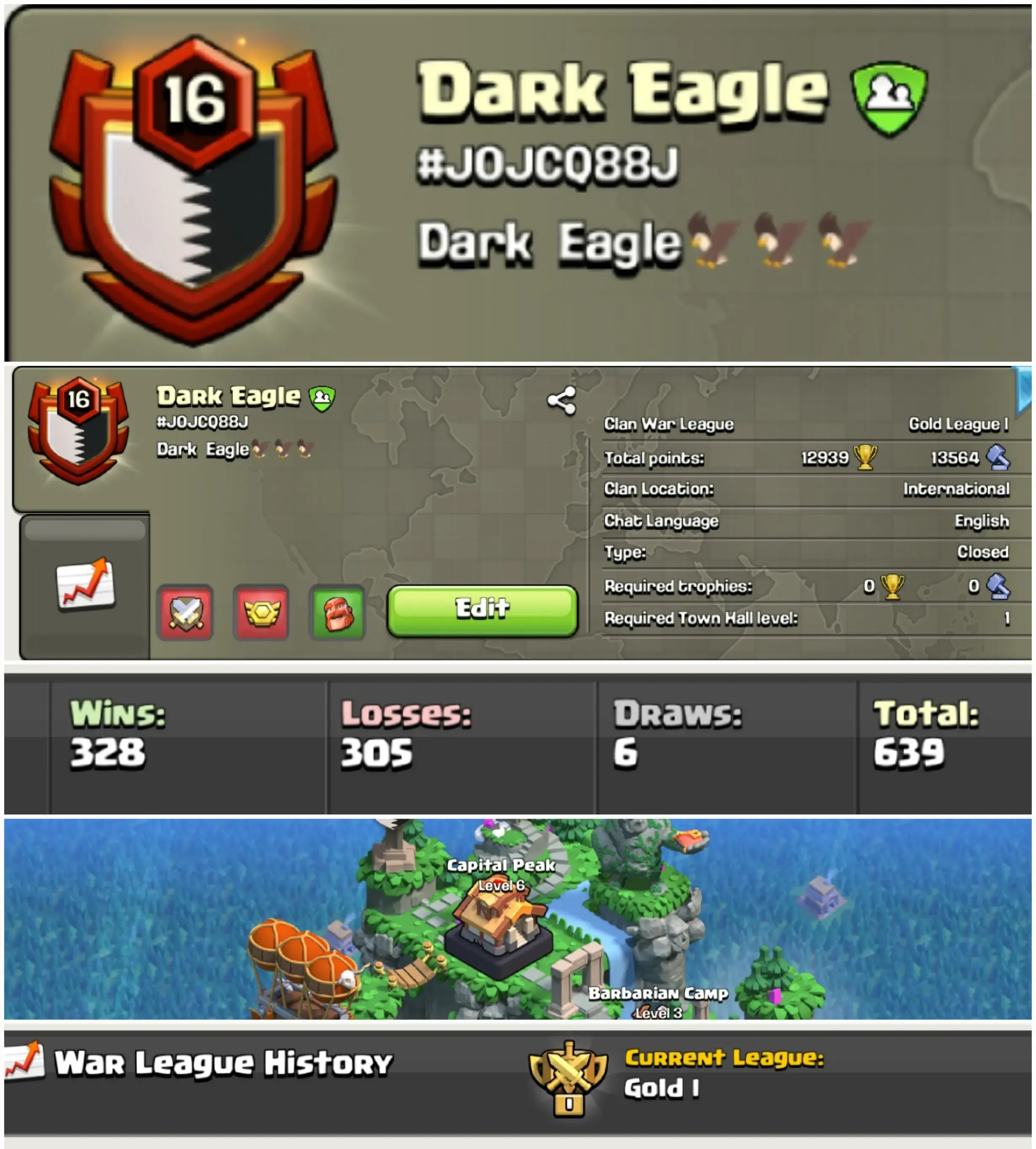 Dark Eagle !! LEVEL 16 !! WIN 328 LOSS 305 !! CAPITAL PEAK 6 !! GOLD LEAUGE 1 !! BEST NAME !! CHEAP !! AFFORDABLE !! INSTANT DELIVERY