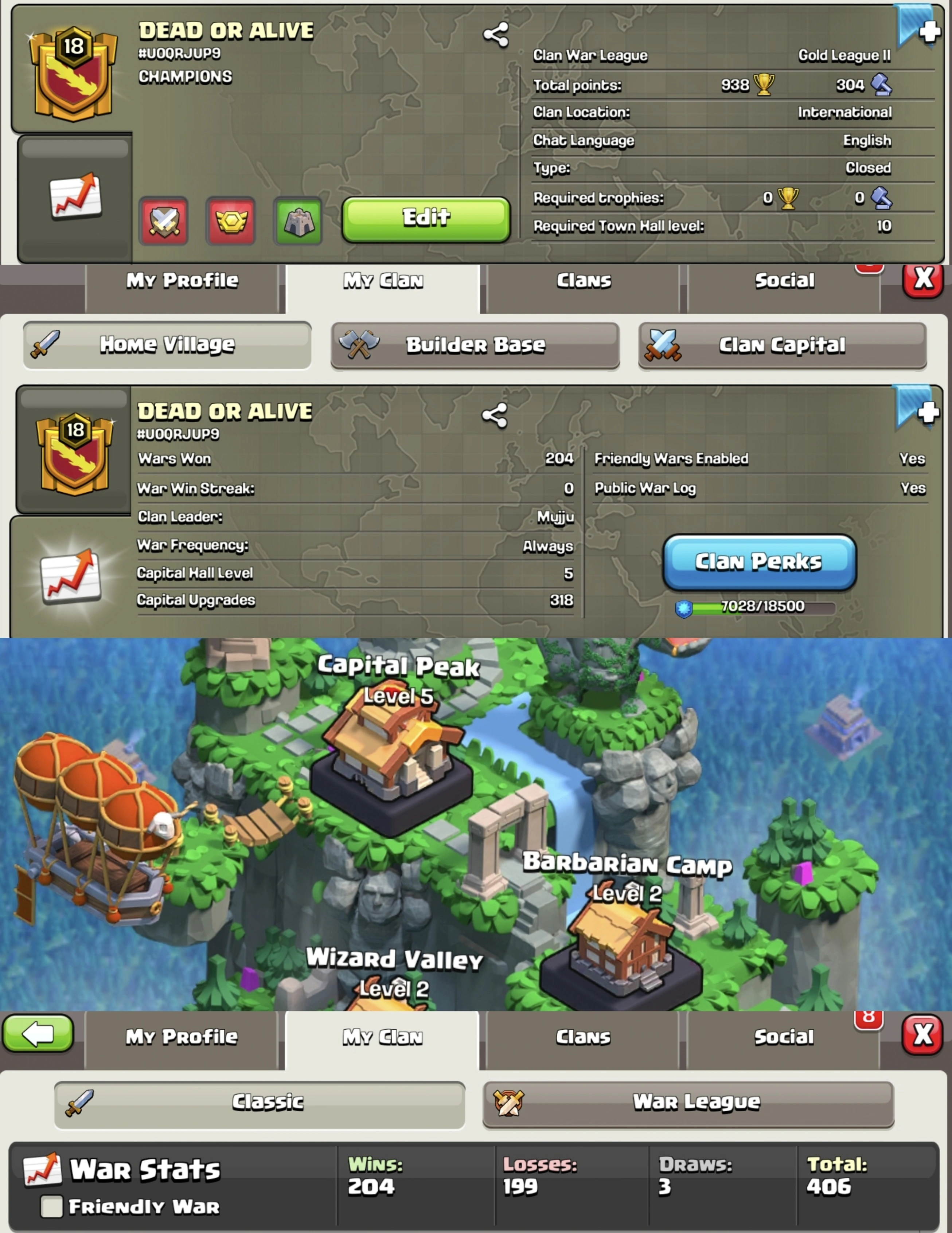 Req And Go !! LEVEL 10.5 !! CAPITAL PEAK 6 !! WIN 61 LOSS 66 !! GOLD 2 !! MOST DEMANDING CLAN !! CHEAP !! INSTANT DELIVERY