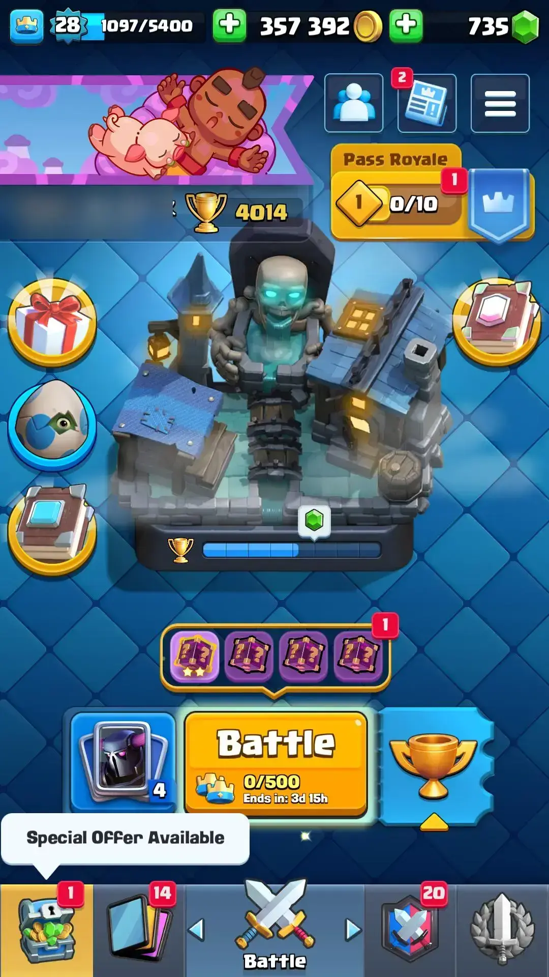 0 CHAMPIONS | KT 10 | 28 LVL | 4014 Trophy | 2 EVO | 0 ELITE | 0 MAX CARDS | 12 Legendary | 22 EPIC | FULL ACCESS|IOS/ANDROID|SCREENSHOTS INSIDE