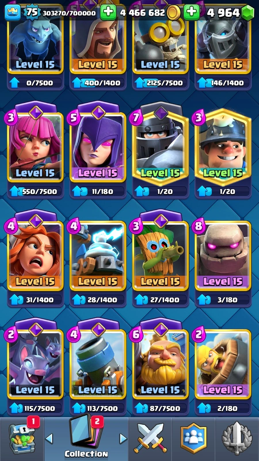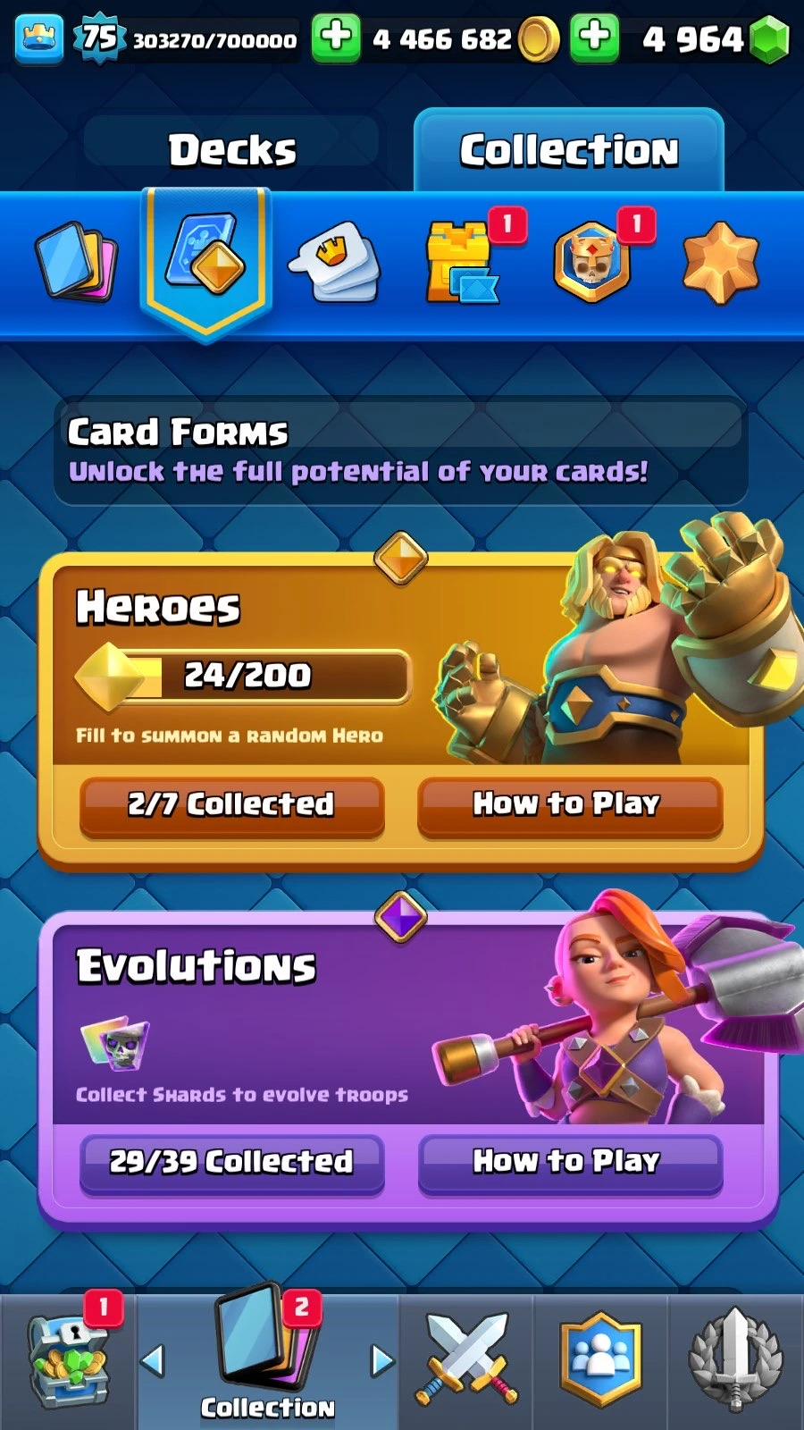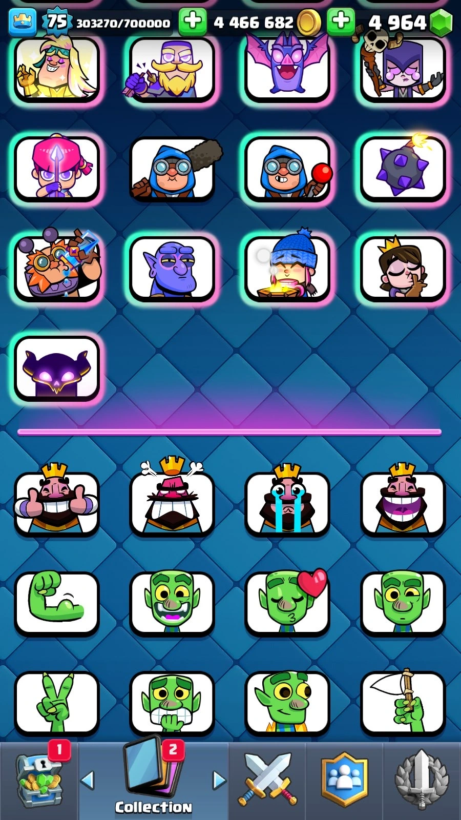 10 888 Trophies 🏆 XP level 75 | 29 Evolutions 😈 79+ Level 15 cards | 2 Heroes unlocked ⭐️155+ emotes | KT16