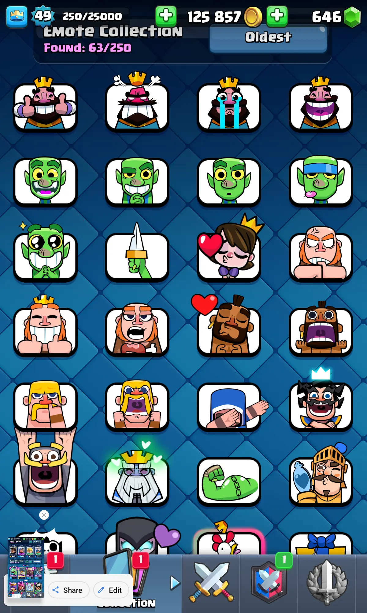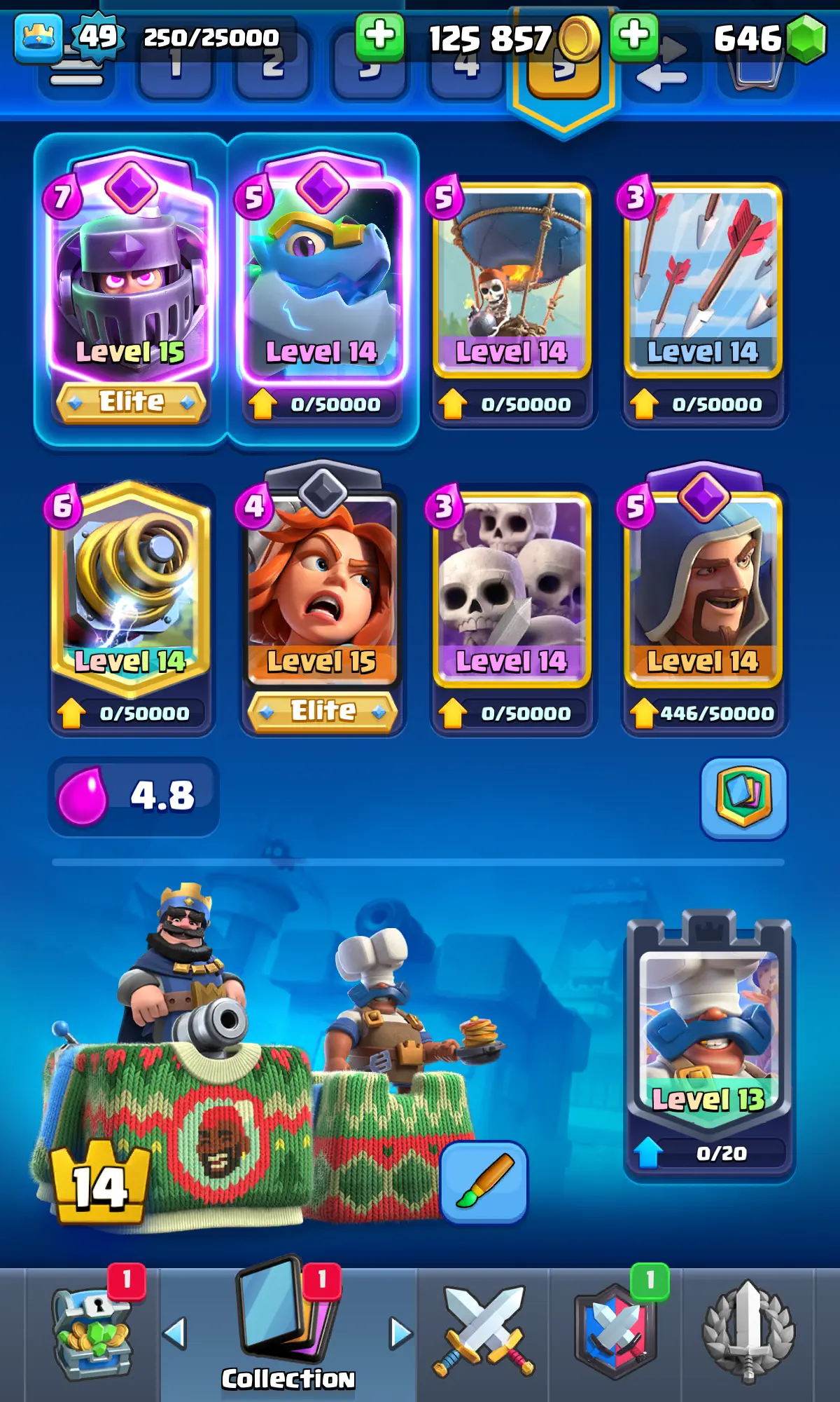 🎯 12,000🏆 MEGA KT 14 ⚡2 ELITES 🌙ARENA 23 👑 LVL 49 💫 63 EMOTES ➕ 20 MAX CARDS 🚀 MASTER 1 ⚔️ FULL ESS ⚡INSTANT DELIVERY 🚚