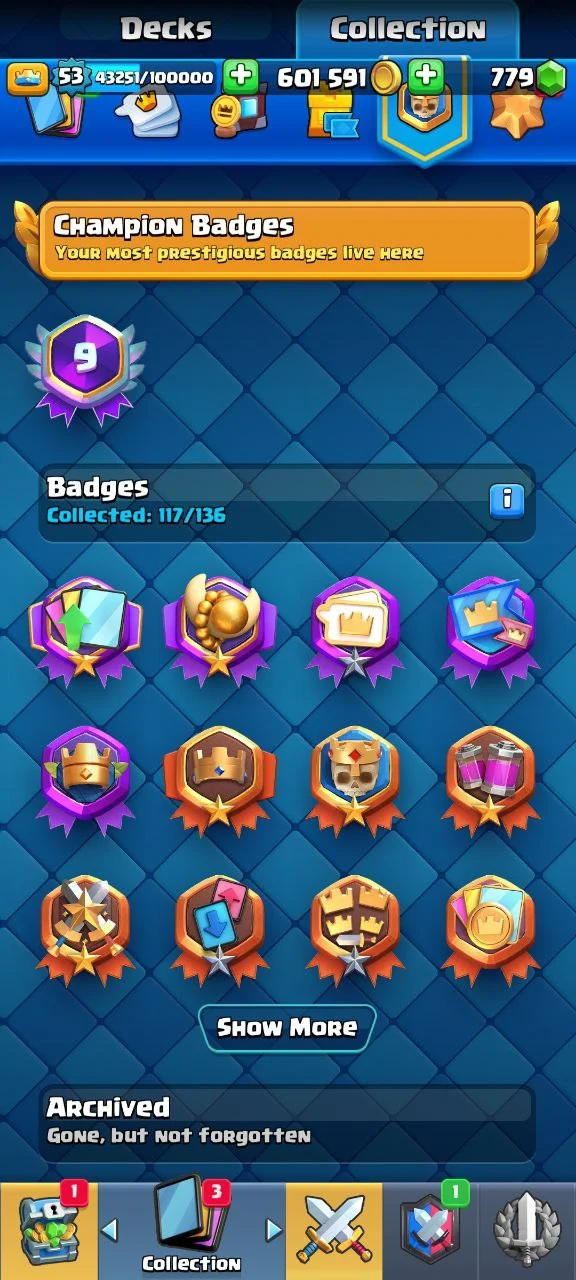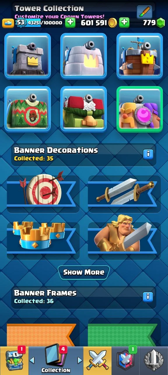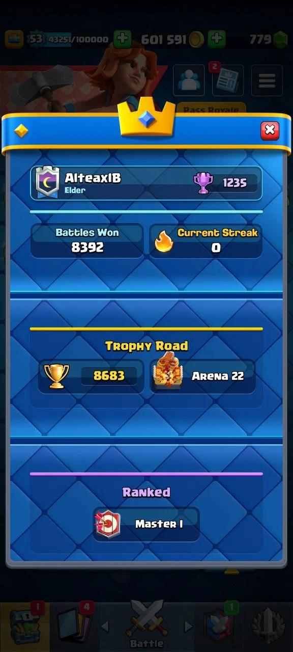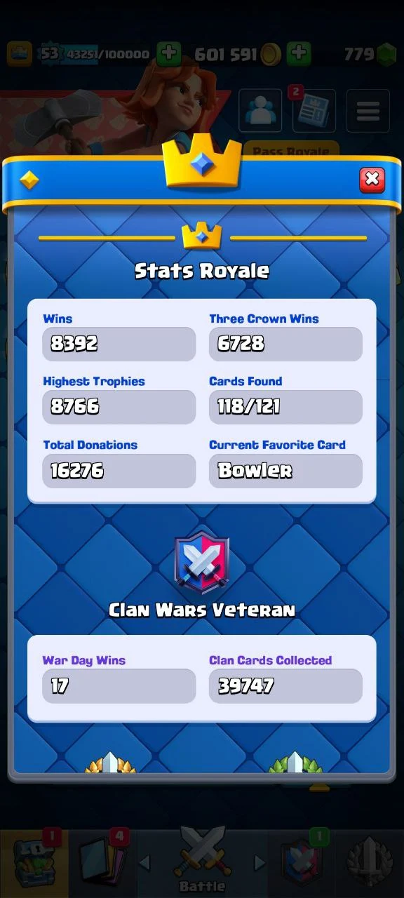π₯ 32 MAX β‘ 4 EVO π₯ 3 ELITE π« KT14 π 8683 TROPHIES π LVL 53 π 120 EMOTES π 6 TOWER SKINS π (9 YEARS BADGE)