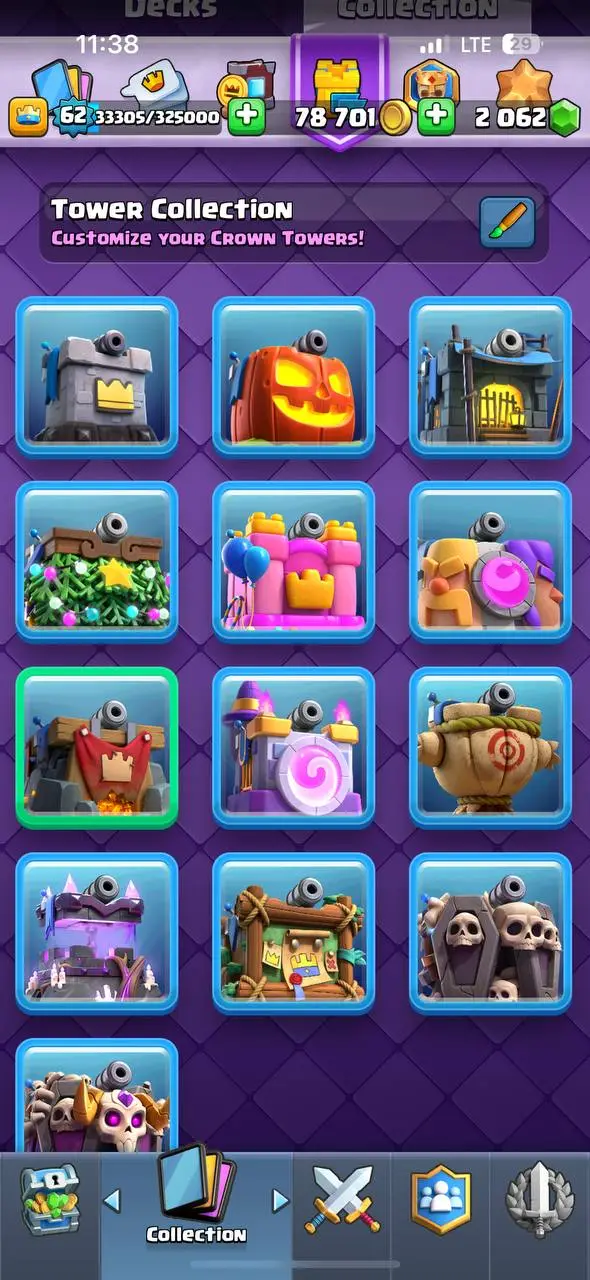 ๐คฉ 62 XP ๐คฏ 78 CARD MAX ๐ 34 ELITE ๐ฅถ 10000 TROPHIES ๐ 12 RARE TOWER SKIN ๐ 123 RARE EMOTE ๐ฟ 2000 GEM ๐ INSTANT DELIVERY ๐