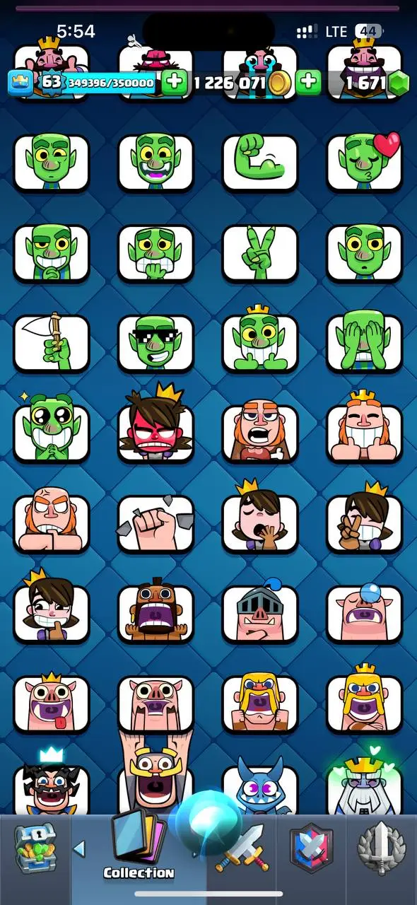 🥶 64 XP 🤯 110 CARD MAX 😶🌫️ 43 ELITE CARD 🤬 22 EVOLUTION 🥵 160 RARE EMOTE 😤 11500 TROPHIES 🏆 1500000 GOLD 😫 INSTANT DELIVERY 🚚