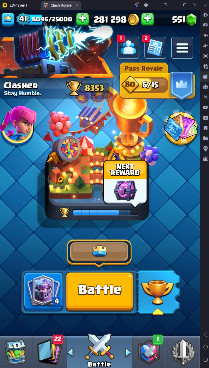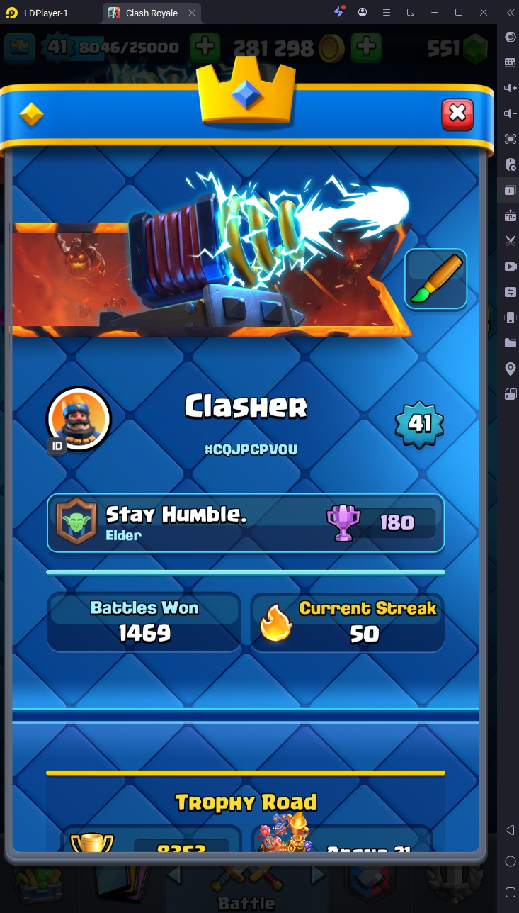 8353 TROPHY 🏆 41 LVL 💯 KT 13 👑 118 CARDS ♦️ 1 MAX CARDS 👑 1 ELITE CARDS 🔮 5 EVO 💯 EMOTE 29 🎭 #CQJPCPV0U ⸱ TAG ACCOUNT ♥️