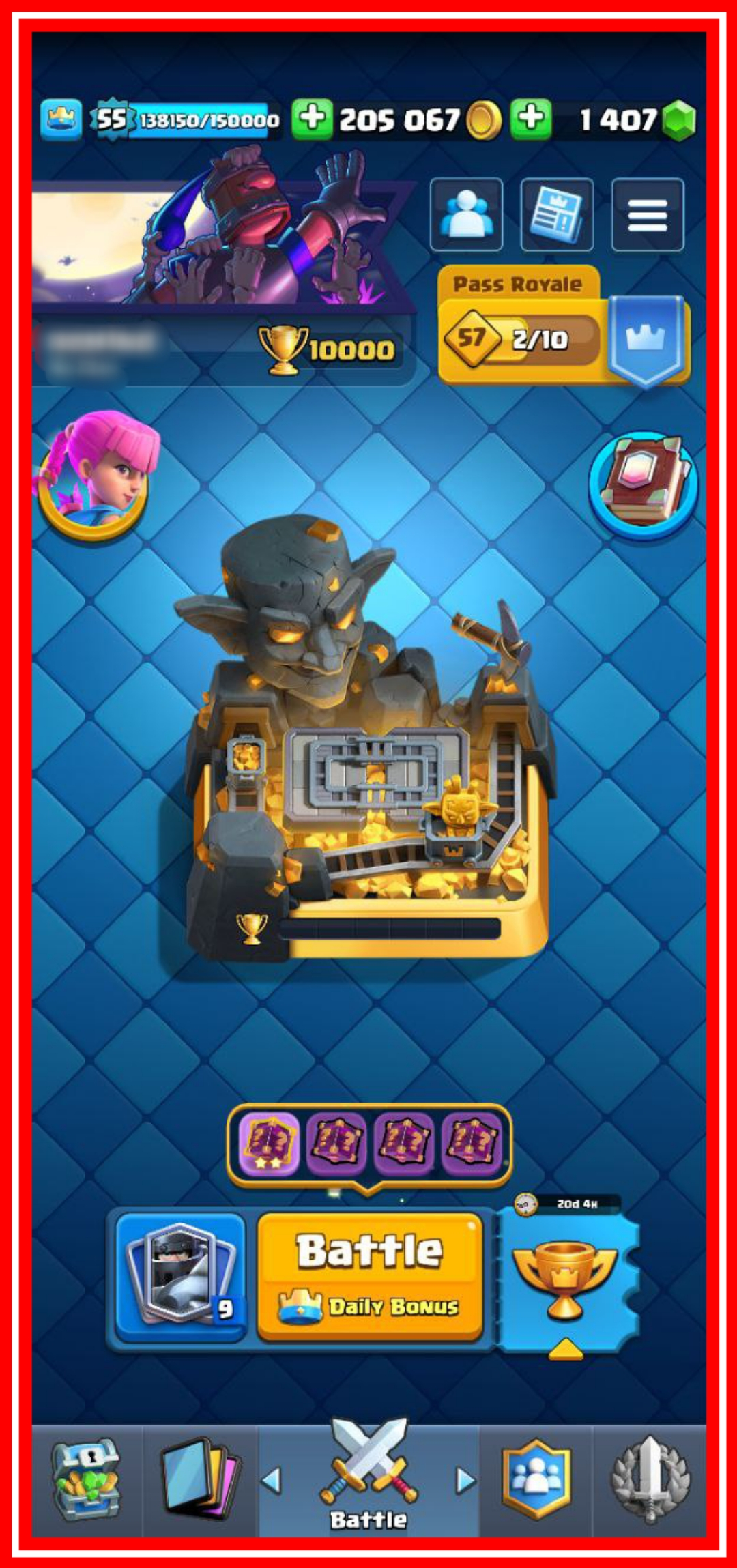 😮9 YEARS BADGE 🐷LYN HOG EMOTE🏆 10000 TROPHIES🔥KT 15 ✨ LVL[55] 🔱 ARENA 25 🛢️ELITE CARDS [04]🏷️ MAX CARDS [75] ✨LVL 13 [33]✌ EMOTES 88 [ 🌟CANON KING, LIMITED BALLOON,KING HOLDING 10] 🔱 CARDS [118] 🧪 EVO[06]✨SKINS 07 🏅100%SAFE 🔷 CHEAPEST IN MARKET