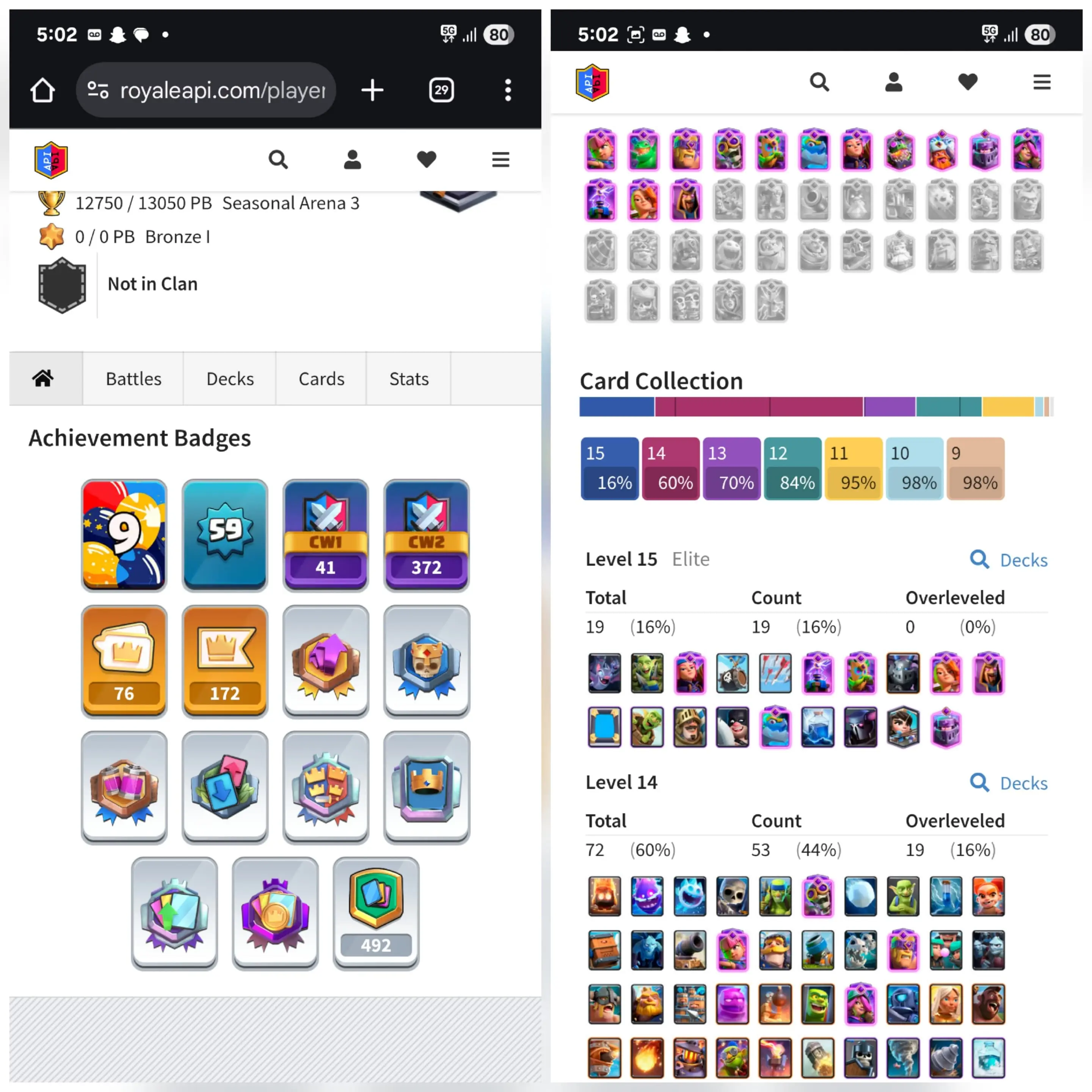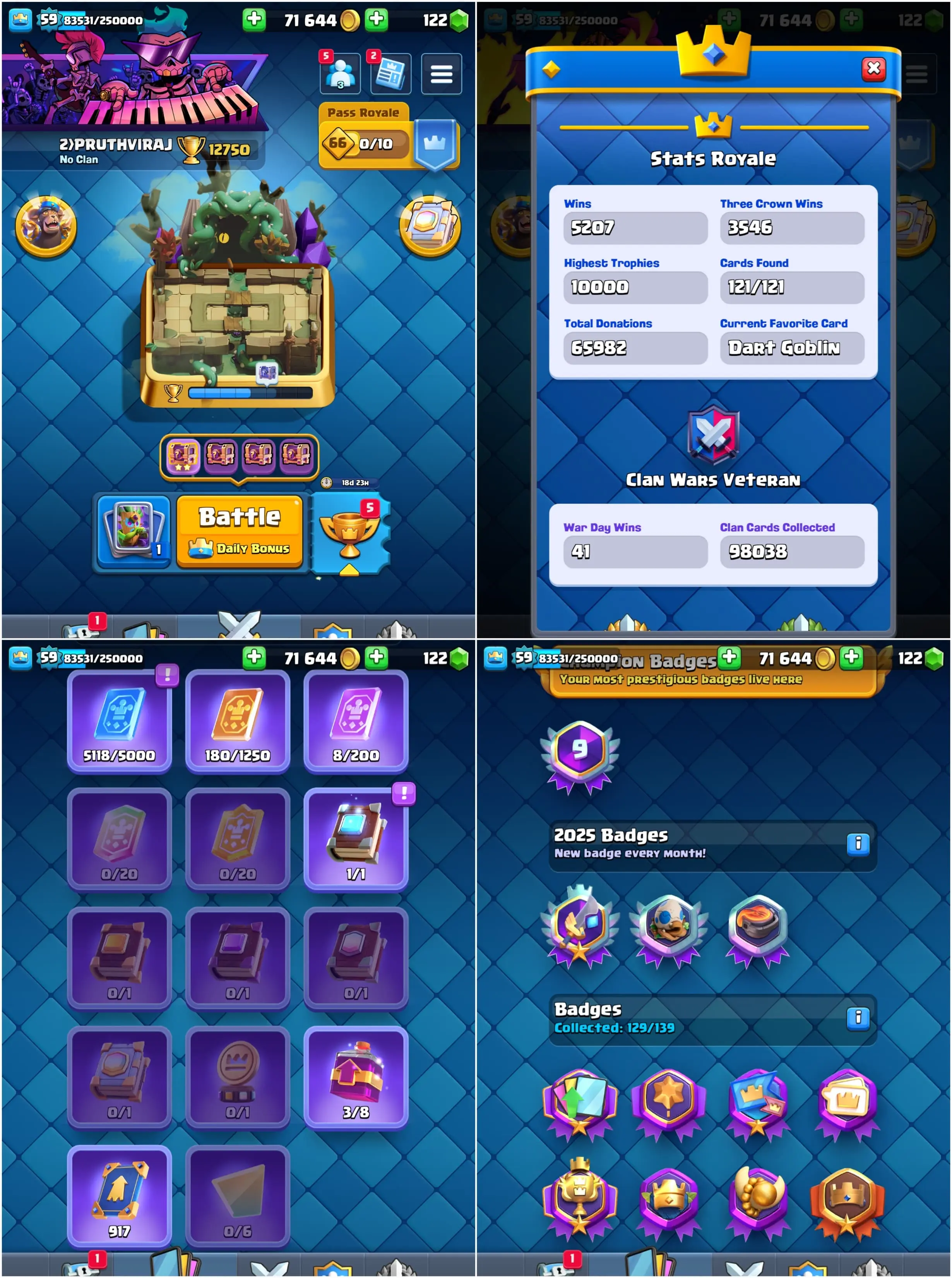 [ 9 Years Played Badge ] Level 59 + KT 15 | 76 Emotes | 12000+ Trophies | 72 Max Cards {19 Elites} + 14 Evos | Android & Ios | Instant Delivery