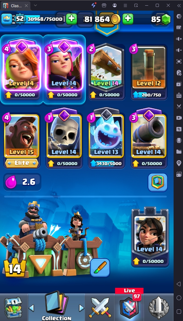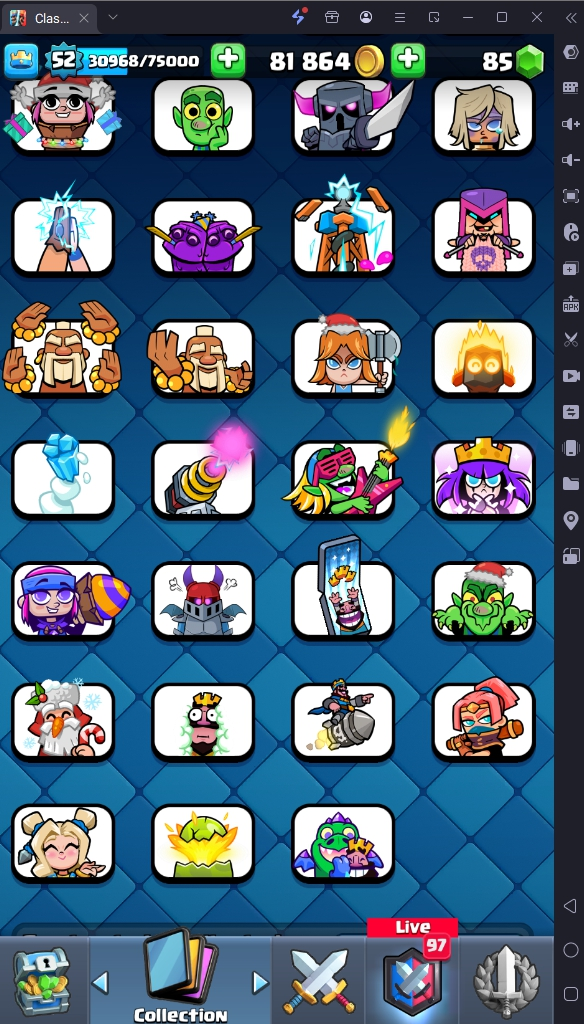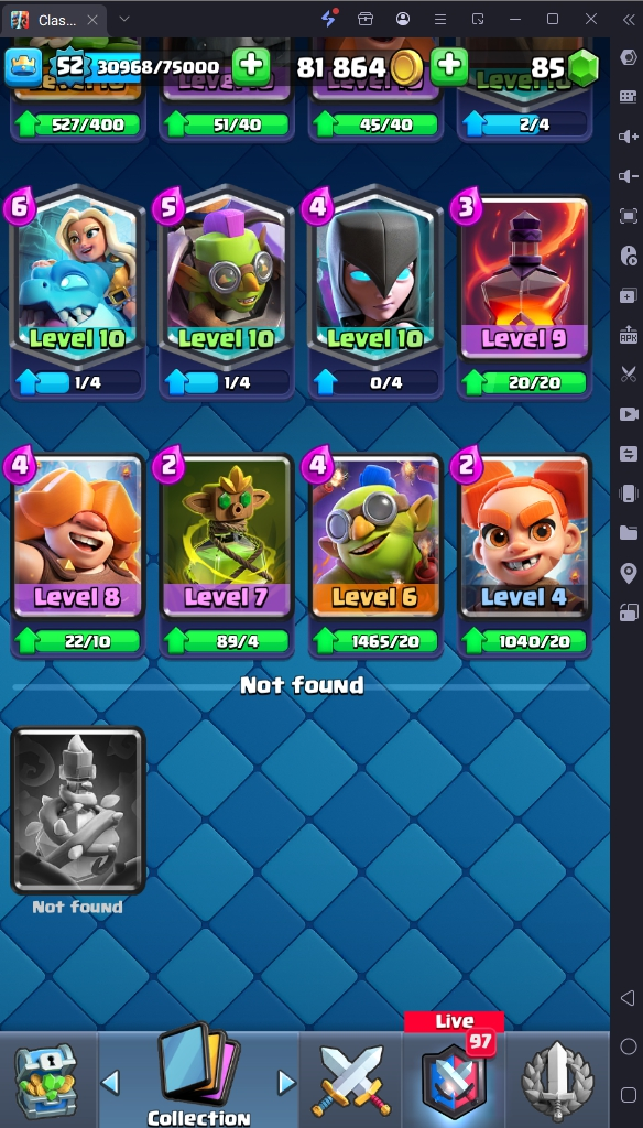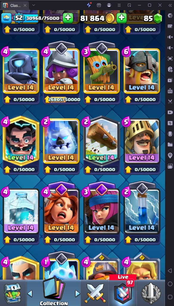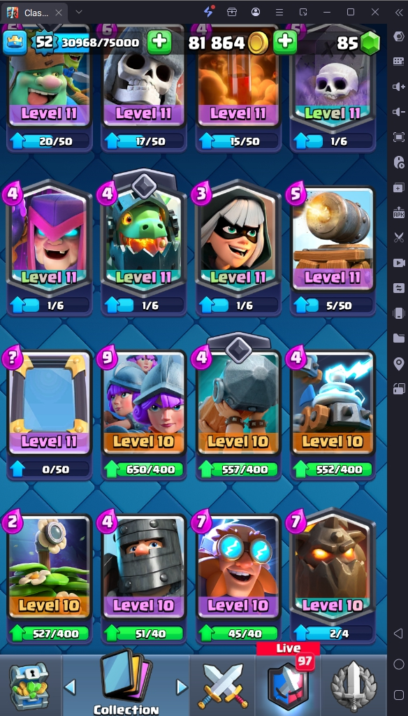 9360 TROPHY 🏆 52 LVL 💯 KT 14 👑 120 CARDS ♦️ 0 MAX CARDS 👑 2 ELITE CARDS 🔮 8 EVO 💯 EMOTE 79 🎭 #UCU8YYQCU ⸱ TAG ACCOUNT ♥️