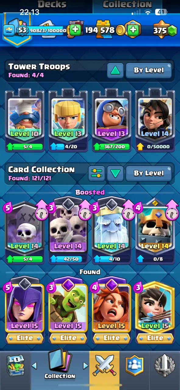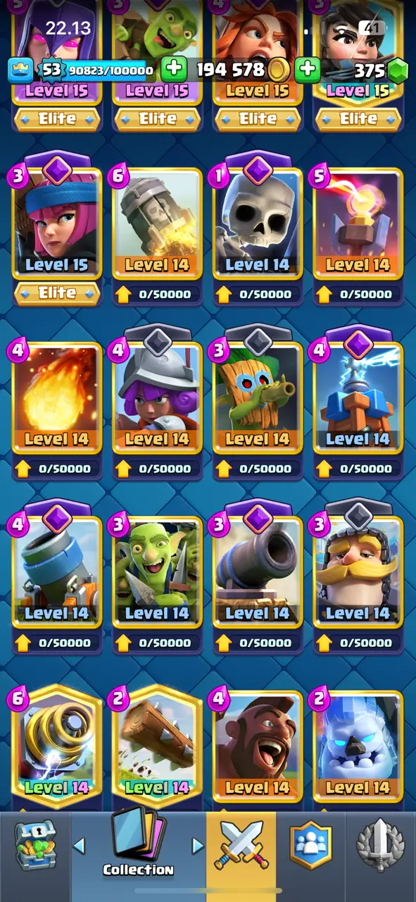 π₯ Amazing π₯ CR Lv.53 π₯ Free Change Name π₯ Seasonal Arena 1 π₯ 10000 Trophies π₯ KT 14 π₯ 16 Evo Cards π₯ 25 Max Cards & 5 Elites π₯ 77 Emotes π₯ 7 Tower Skins π₯ [F2671] π₯